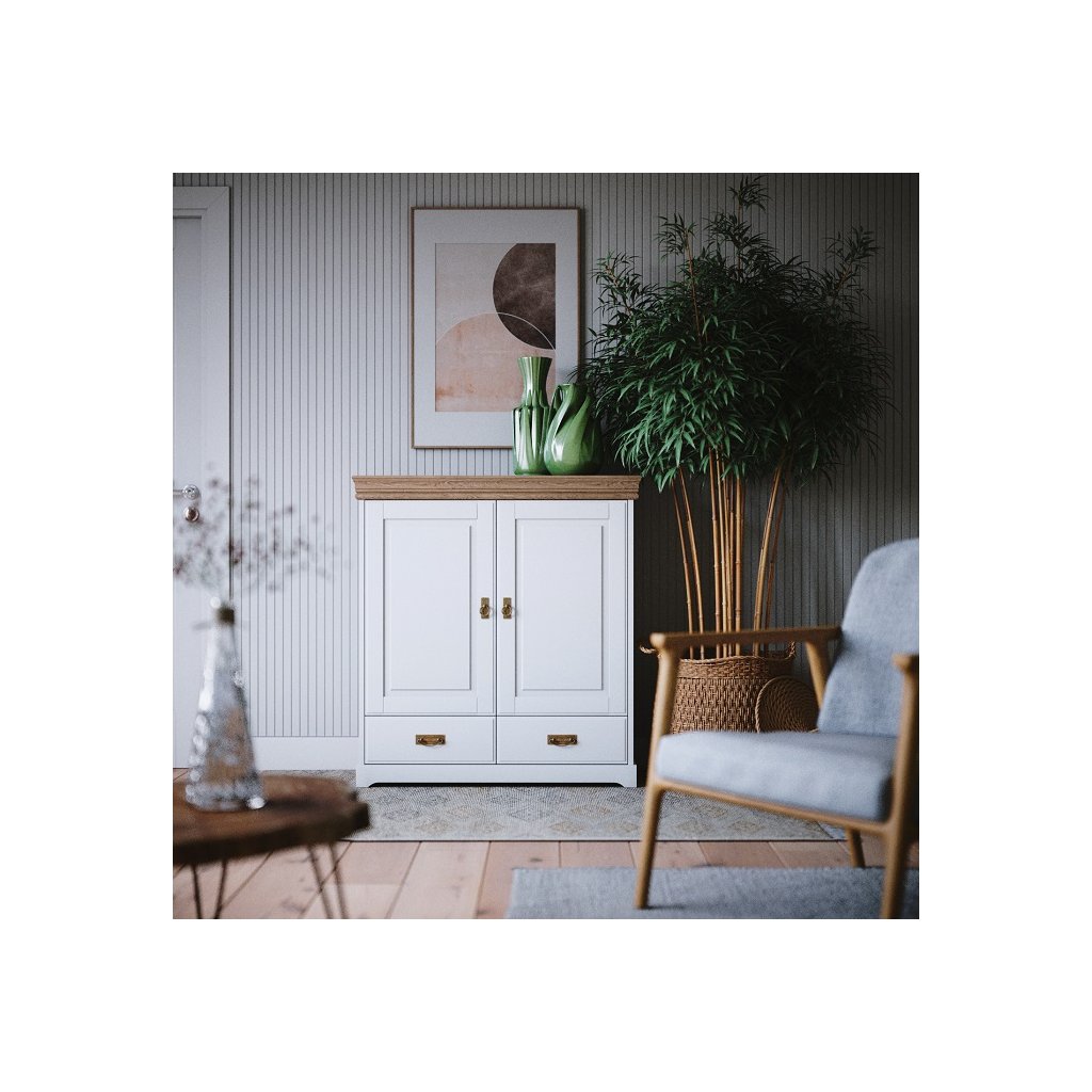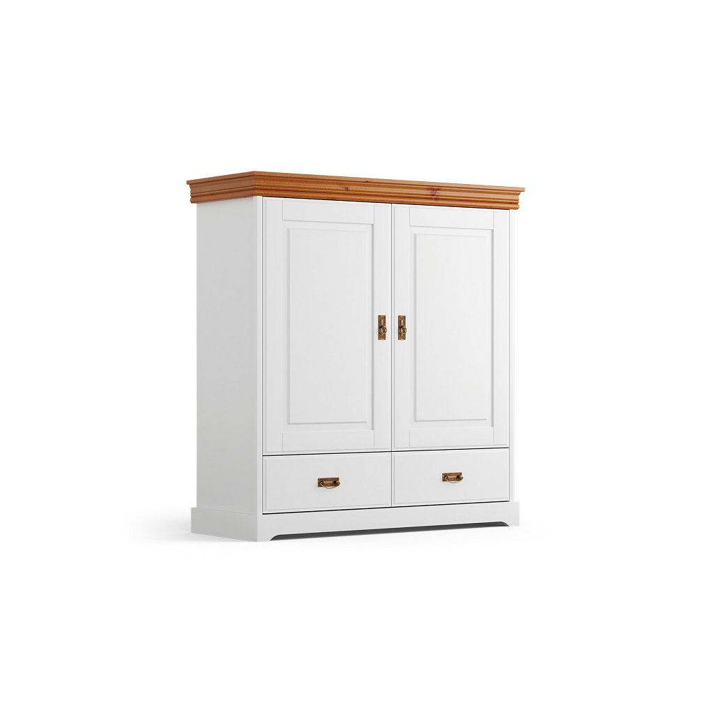 Rustikální prádelník TOSKANIA z masivu je vyrobena z masivní finské borovice a ošetřena bílou vodou ředitelnou barvou, která rozjasní jakékoliv interiéry vašeho domova. Horní deska je namořena do medového odstínu. Finská borovice vyniká svojí odolnosti a nádhernou dřevitou strukturou, kterou můžeme cítit, při každém doteku. Dna šuplíku a záda prádelníku jsou vyrobeny z dřevovláknité desky HDF.