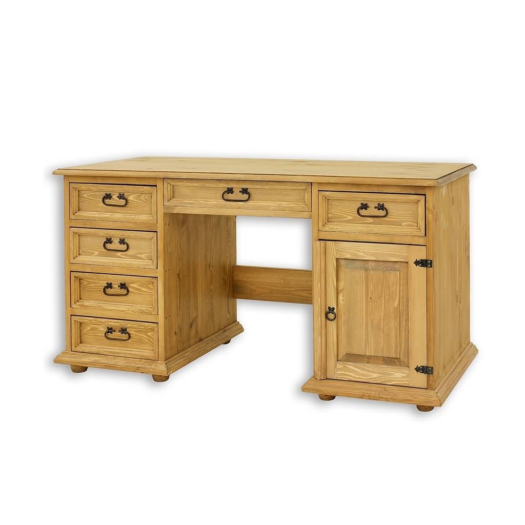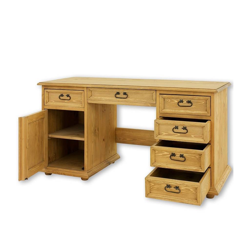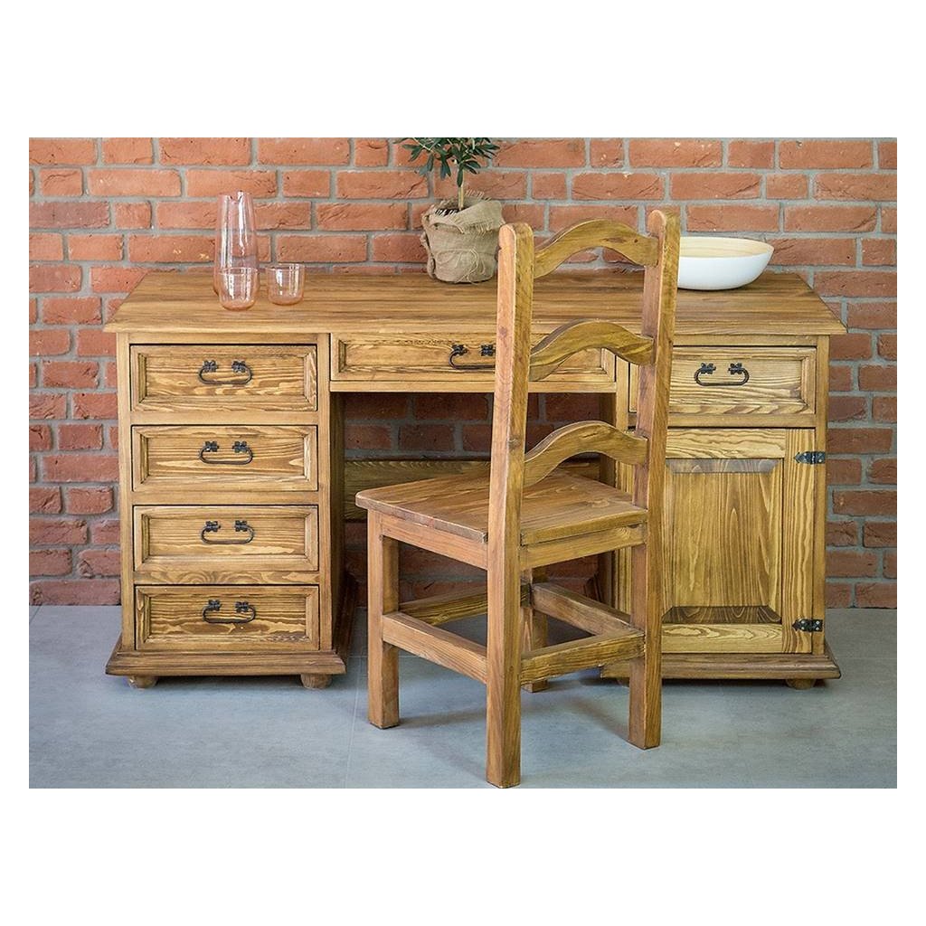 Psací stůl CORDOBA je vyroben z borovicového masivu vysoké kvality. Zadní část stolu je vyrobená z dřevěné dýhy, a zásuvky jsou v dolní části vyrobeny z překližky. Čela zásuvek jsou opatřeny stylovým kováním.