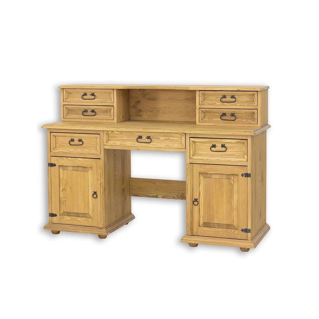 Psací stůl CORDOBA je vyroben z borovicového masivu vysoké kvality. Zadní část stolu je vyrobená ze sololitu a zásuvky jsou v dolní části vyrobeny z překližky. Čela zásuvek jsou opatřeny stylovým kováním.