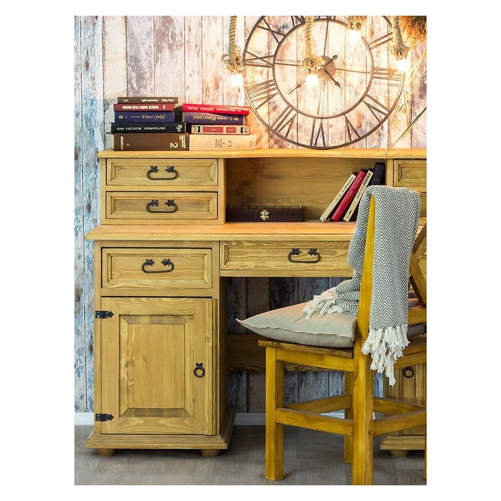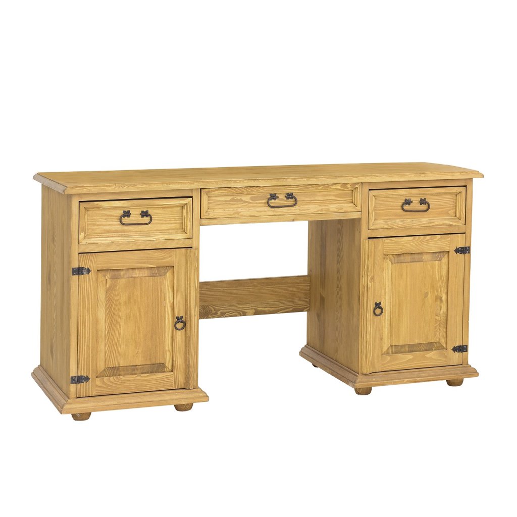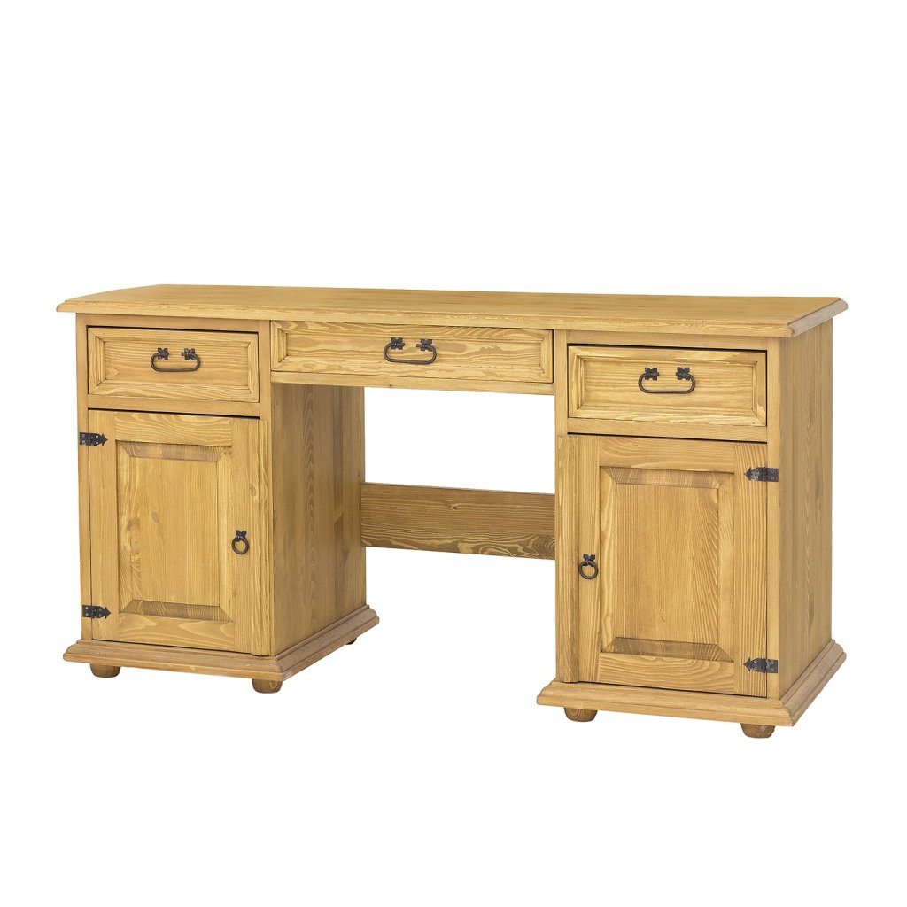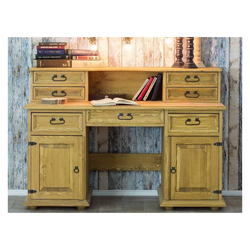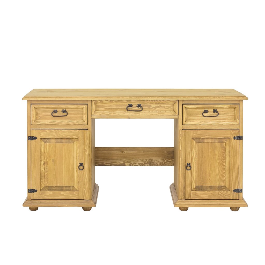 Dřevěný psací stůl CORDOBA je vyroben z borovicového masivu vysoké kvality. Zadní část stolu je vyrobená ze sololitu a zásuvky jsou v dolní části vyrobeny z překližky. Čela zásuvek jsou opatřeny stylovým kováním.