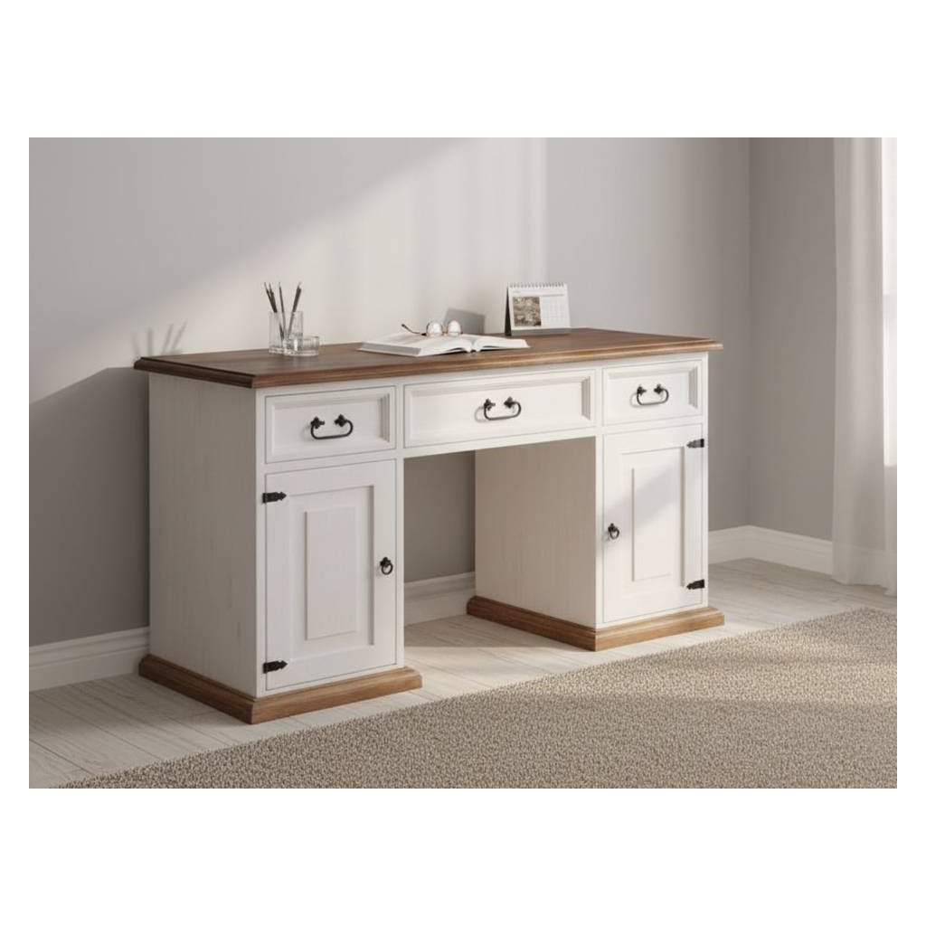 Psací stůl SWEET HOME disponuje četností úložných prostor. Stůl nabízí 4 šuplíky a dvířka s ozdobným frézováním, a v prostřední části rovněž masivní šuplík. Dvířka i šuplíky vlastní ozdobné frézování, díky němuž stůl získává rustikální charakter a romantickou podobu.