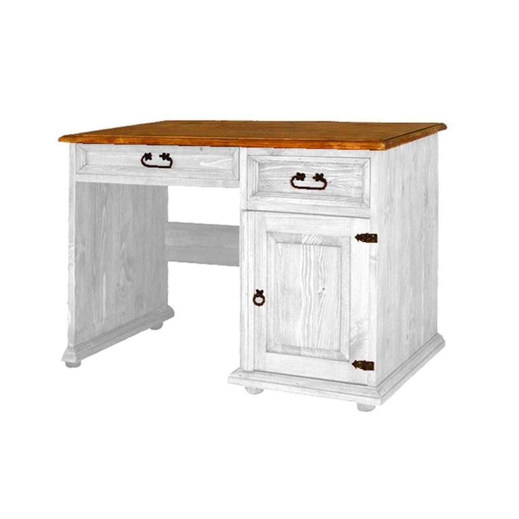 Rustikální psací stůl WHITE HOME BIK 01 je vyroben z borovicového masivního dřeva a ošetřen voskem v bílé či v dvoubarevné kombinaci, dle Vašeho přání. Zadní část stolu tvoří přírodní dýha. Stůl nabízí policovou skříňku a šuplík s originálními úchyty na uložení všeho, co je Vám libo.