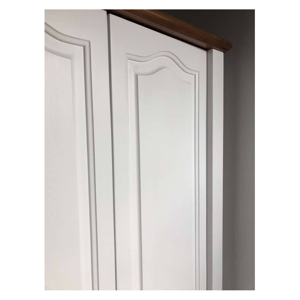 Rustikální skříň AUSTIN MERIDA je vyrobena z masivního borového dřeva, ošetřena barvou a následně lakem. Skříň disponuje šatní tyčí ve dvoudvéřové částí a policemi v jednodvéřové části.