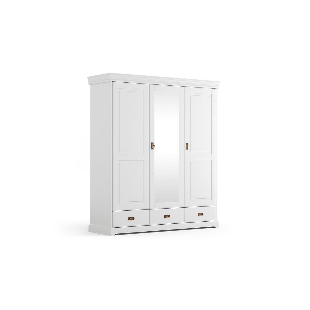 Rustikální skříň TOSKANIA 3D bílá se zrcadlem
