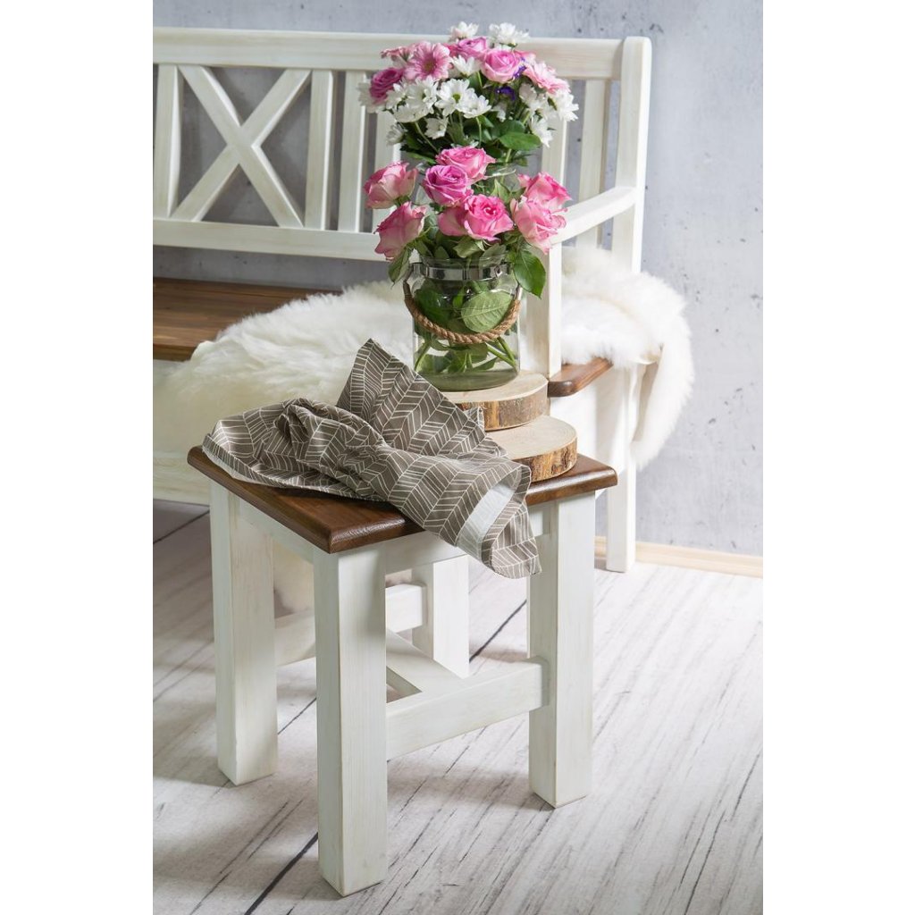 Rustikální taburet WHITE HOME je vyroben z masivního borovicového dřeva vybraného tak, aby byly stabilní, a sloužily po mnoho let. O ošetření je postaráno díky ekologickým voskům, které jsou šetrné k životnímu prostředí a navíc dokáží vyzdvihnout přirozenou krásu borovicového dřeva. Židle je možno objednat v celobílém anebo dvoubarevném provedení.