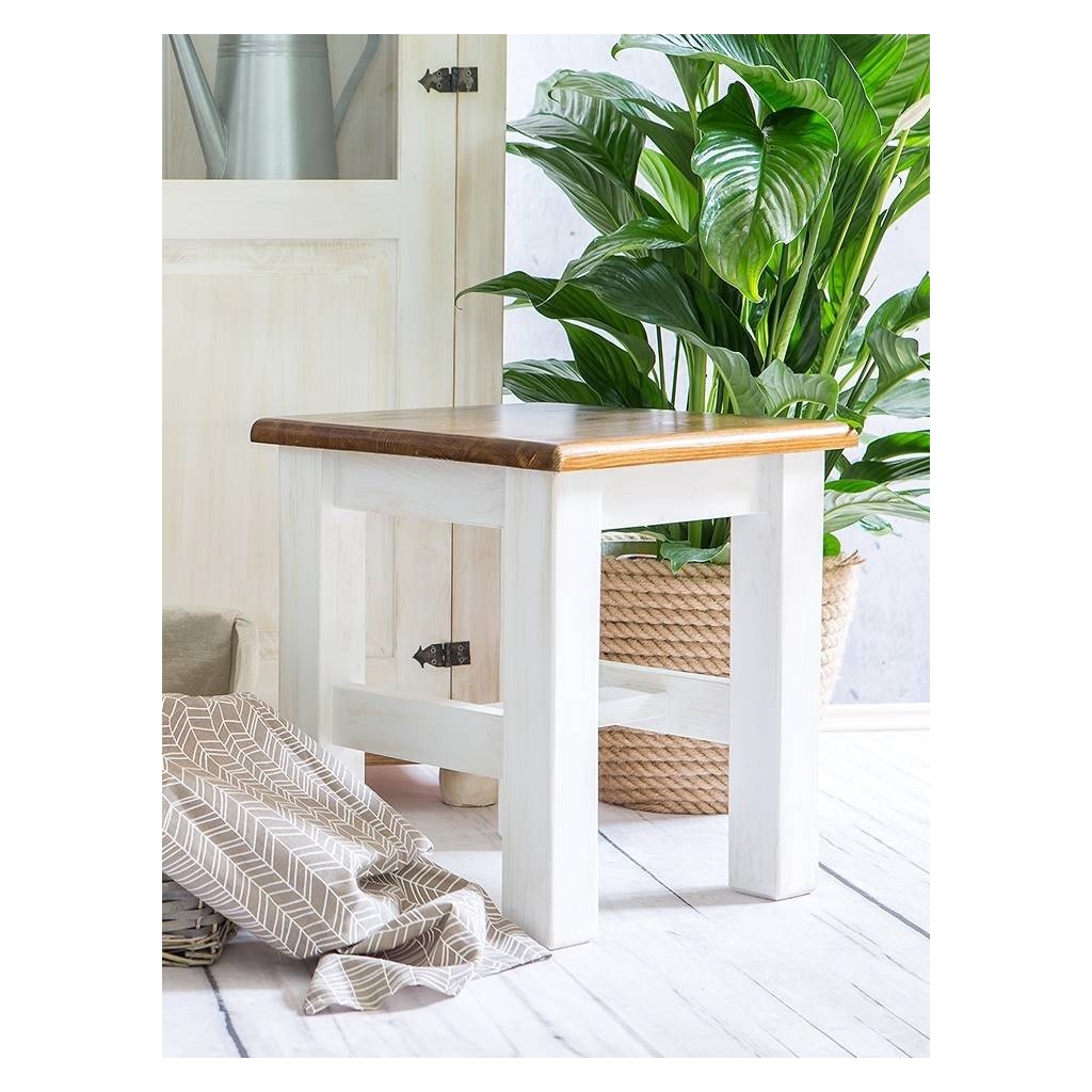 Bílý dřevěný taburet WHITE HOME, nábytek s patinou.