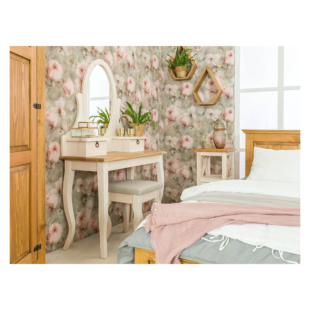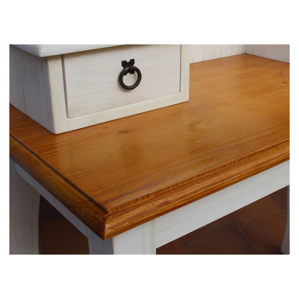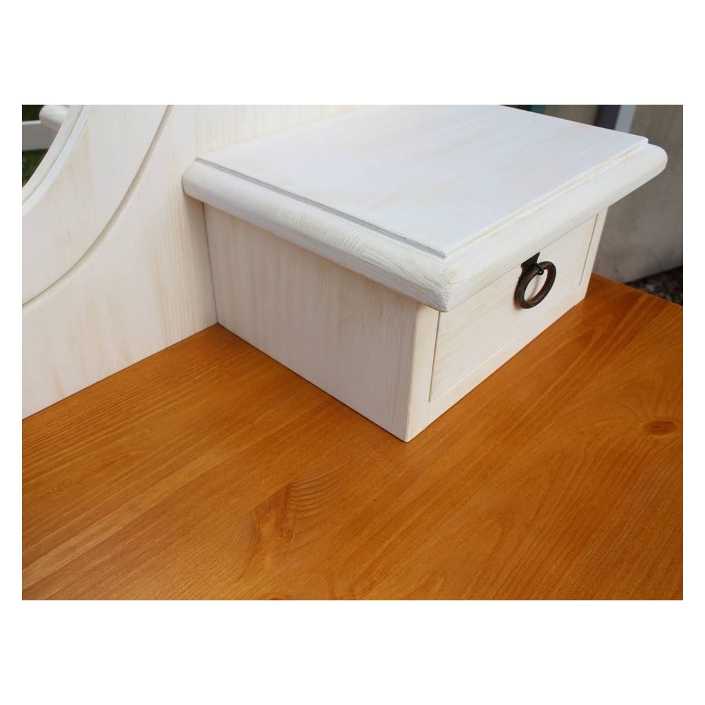 Rustikální toaletní stolek WHITE HOME je vyrobený z masivního borovicového dřeva. Dřevo je ošetřeno voskem na bázi přírodního včelího vosku, který dá vyniknout jeho nádherné kresbě.