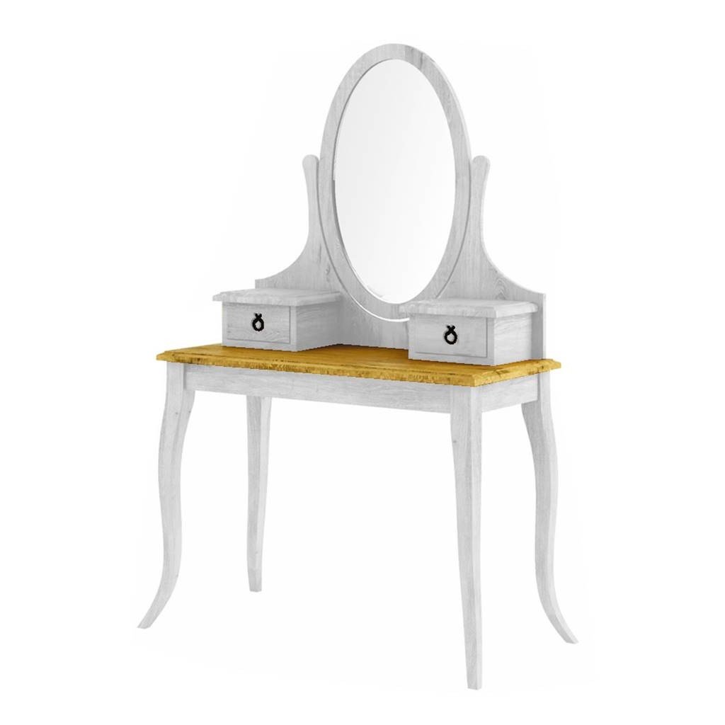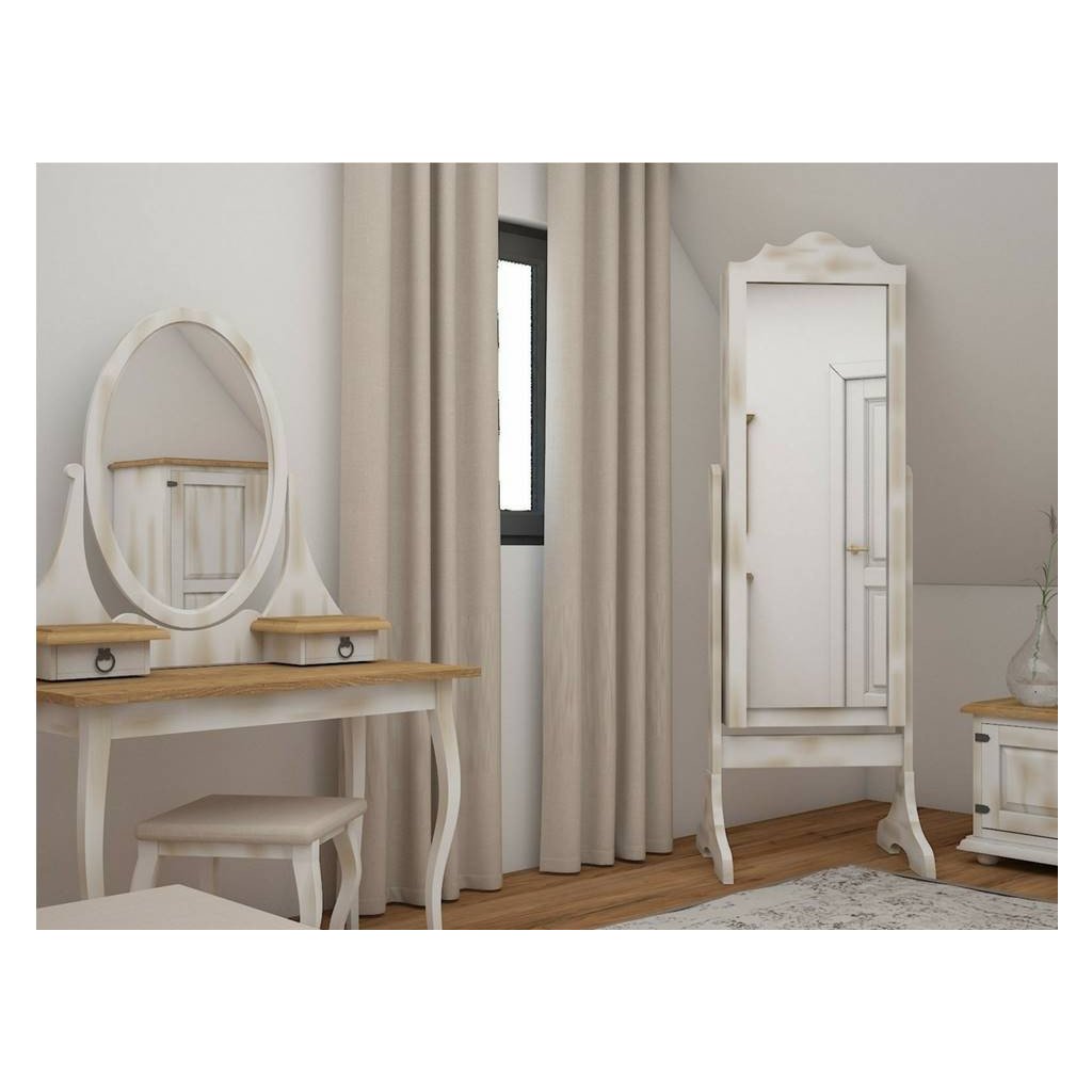 Rustikální toaletní stolek WHITE HOME nabízí dva malé šuplíky na uložení šperku, líčidel či milostných dopisů. Můžete si rovněž nastavit naklonění zrcadla podle Vašich představ.