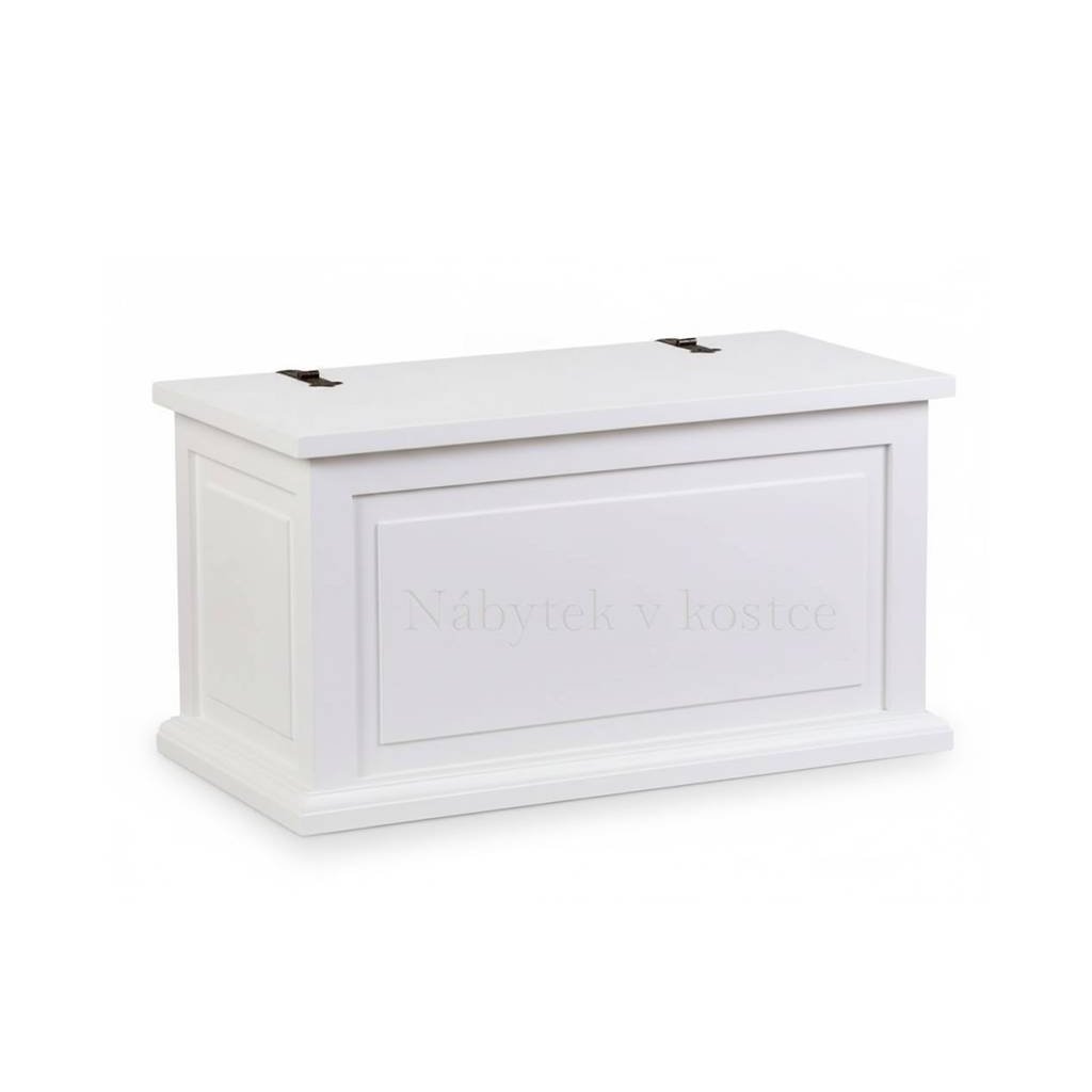Rustikální masivní truhla Sweet Home výborně poslouží jako box na hračky, knihy, ložní prádlo i peřináč.