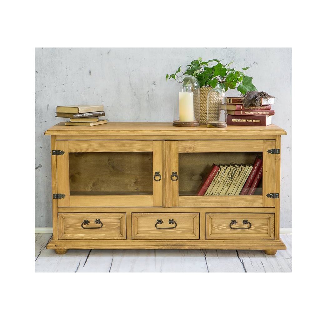 TV stolek CORDOBA je vyroben z borovicového masivu vysoké kvality. Zadní část stolku je vyrobená ze sololitu. Čela skříněk jsou opatřeny stylovým kováním.