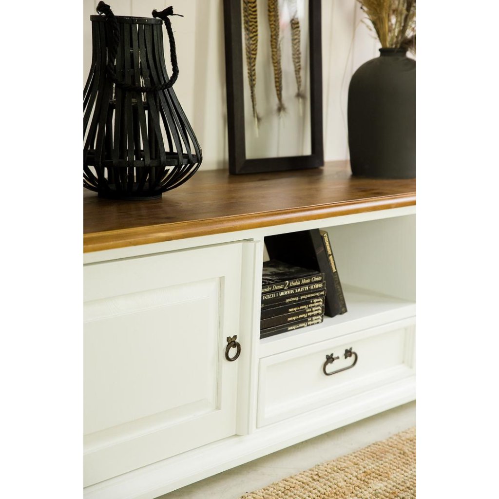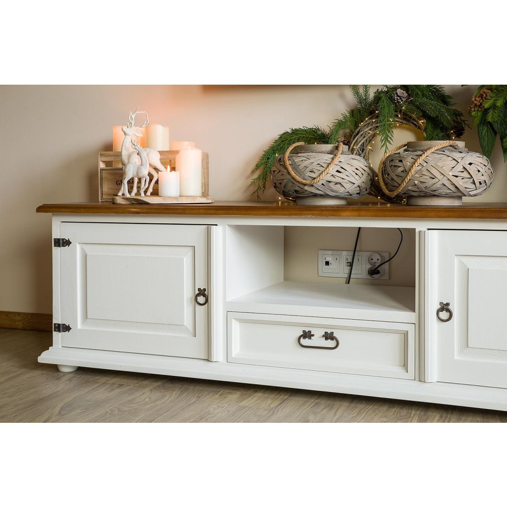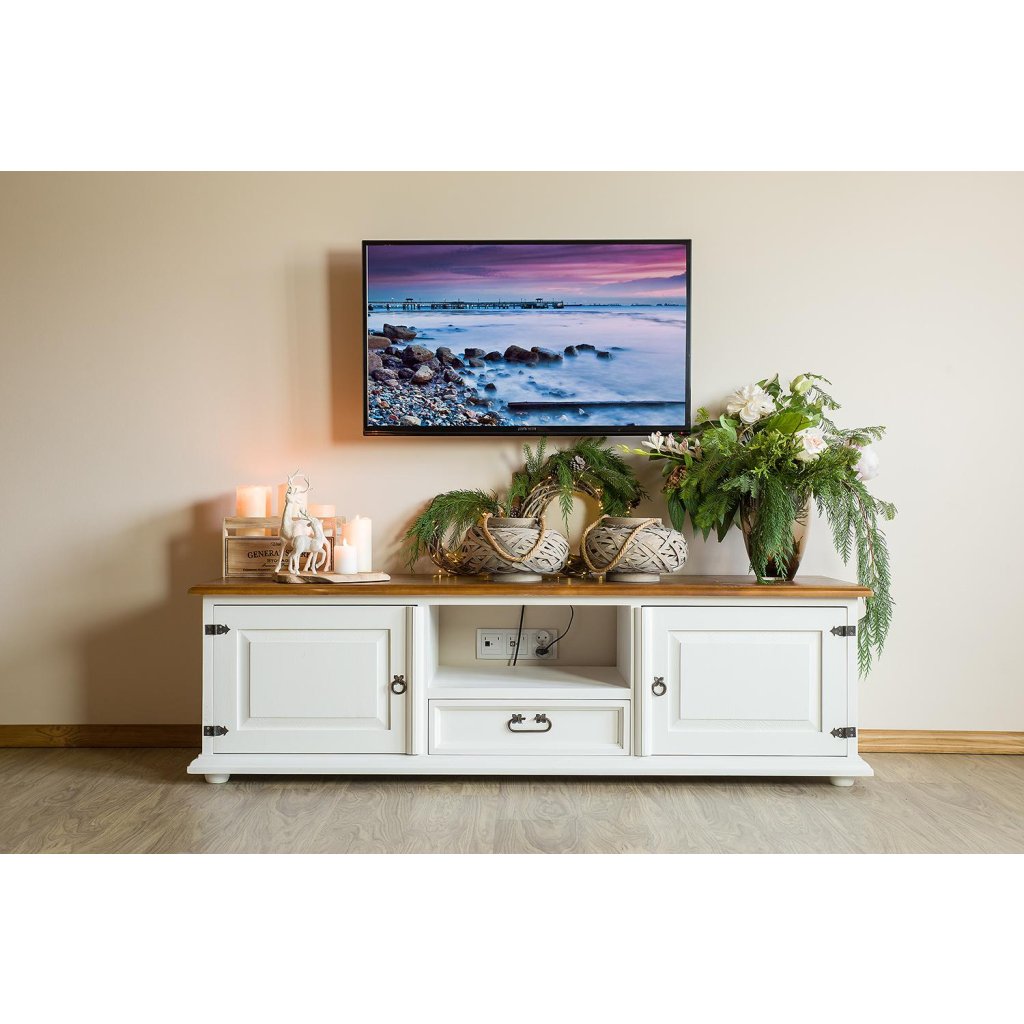 Rustikální TV stolek WHITE HOME RTV 03 je určen všem, kteří hledají pro své interiéry nábytek ve stylu Provence, retro nábytek, bílý venkovský a vesnický nábytek či selský nábytek.