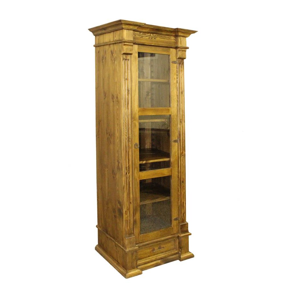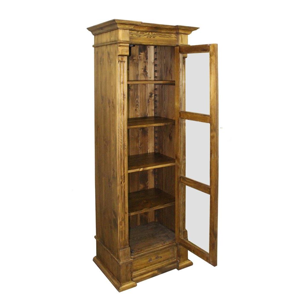 Rustikální celomasivní vitrína MEXICANA je vhodná do kuchyně, jídelny i do pracovny jako knihovna.
