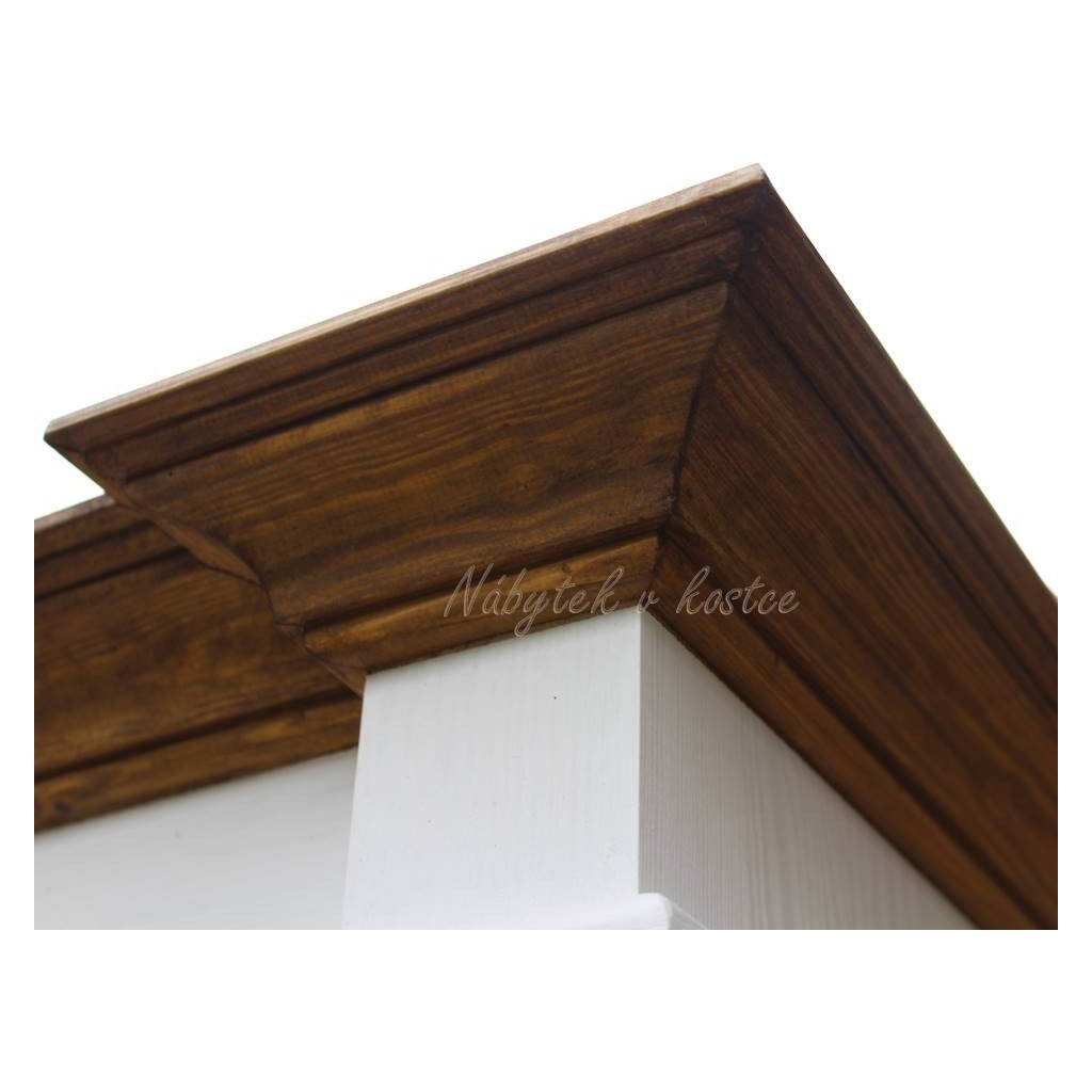 Rustikální vitrína SWEET HOME z kolekce SWEET HOME osloví ty, kteří mají rádi venkovský styl bydlení. Romantický nábytek v kombinaci bílé a hnědé barvy dává nezapomenutelnou atmosféru starých časů a rovněž nádech francouzského venkova Provence. Rustikální design nábytku podtrhují klasické linie a stylové kování.