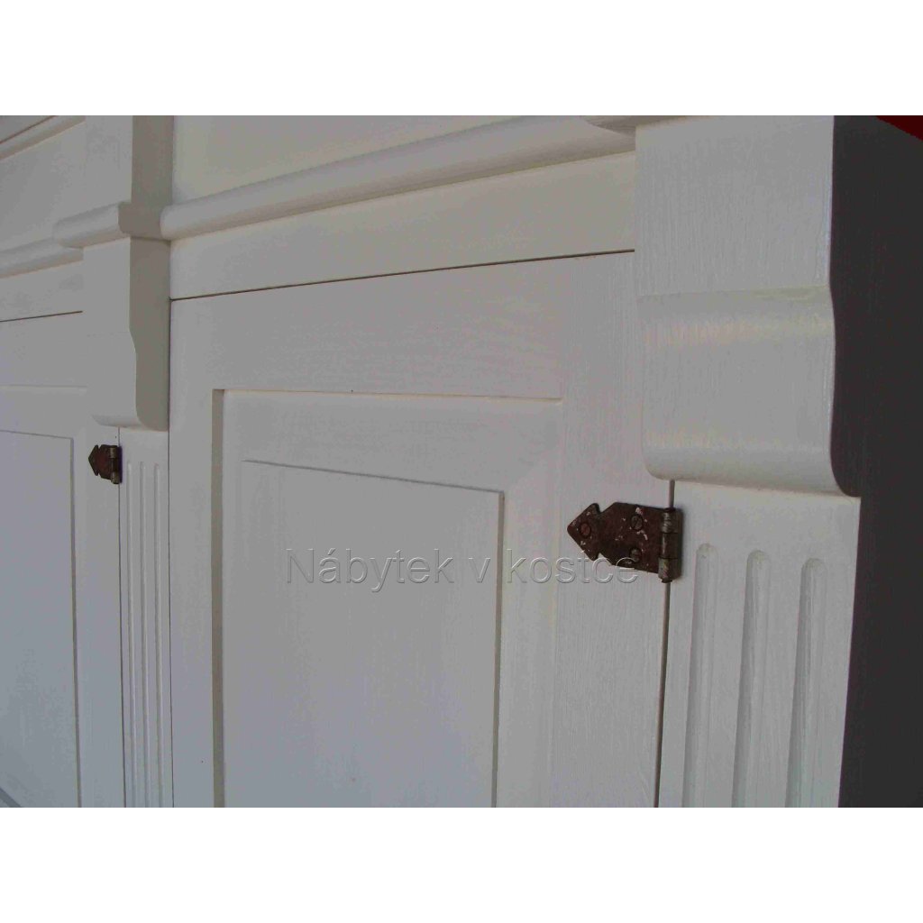 Rustikální vitrína SWEET HOME patří mezi oblíbený produkt našich stálých zákazníku. Vitrína je vyrobená z borovicového masivního dřeva a ošetřena bílou vodou ředitelnou barvou anebo v bílé či bílo-hnědé barevné kombinaci, dle Vašeho přání. Ze dřeva jsou rovněž vyrobeny i pojezdy na šuplíky a zadní část, díky čemuž působí vitrína opravdu luxusně a stylově. Součásti vitríny jsou 4 police.
