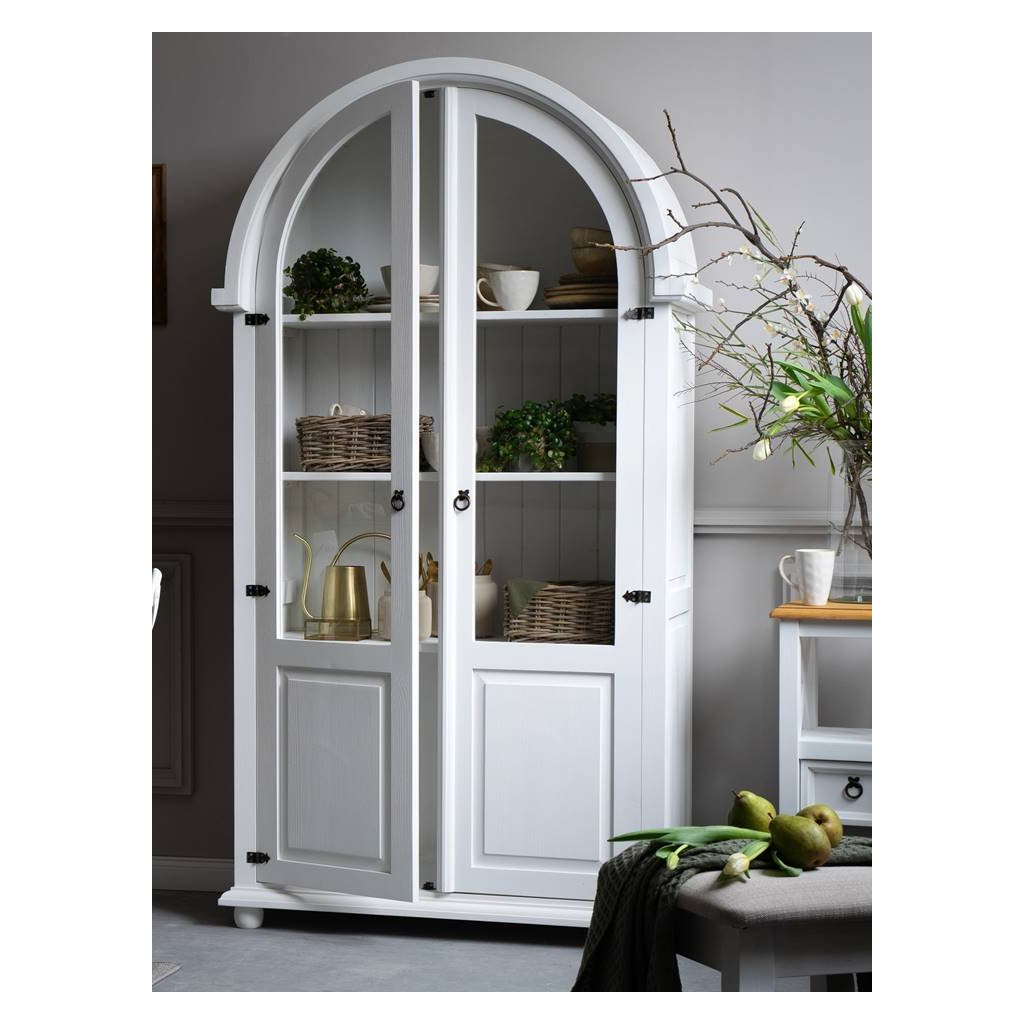 Rustikální vitrína WHITE HOME VIT 03 je určena všem, kteří hledají pro své interiéry nábytek ve stylu Provence, retro nábytek, bílý venkovský a vesnický nábytek či selský nábytek.