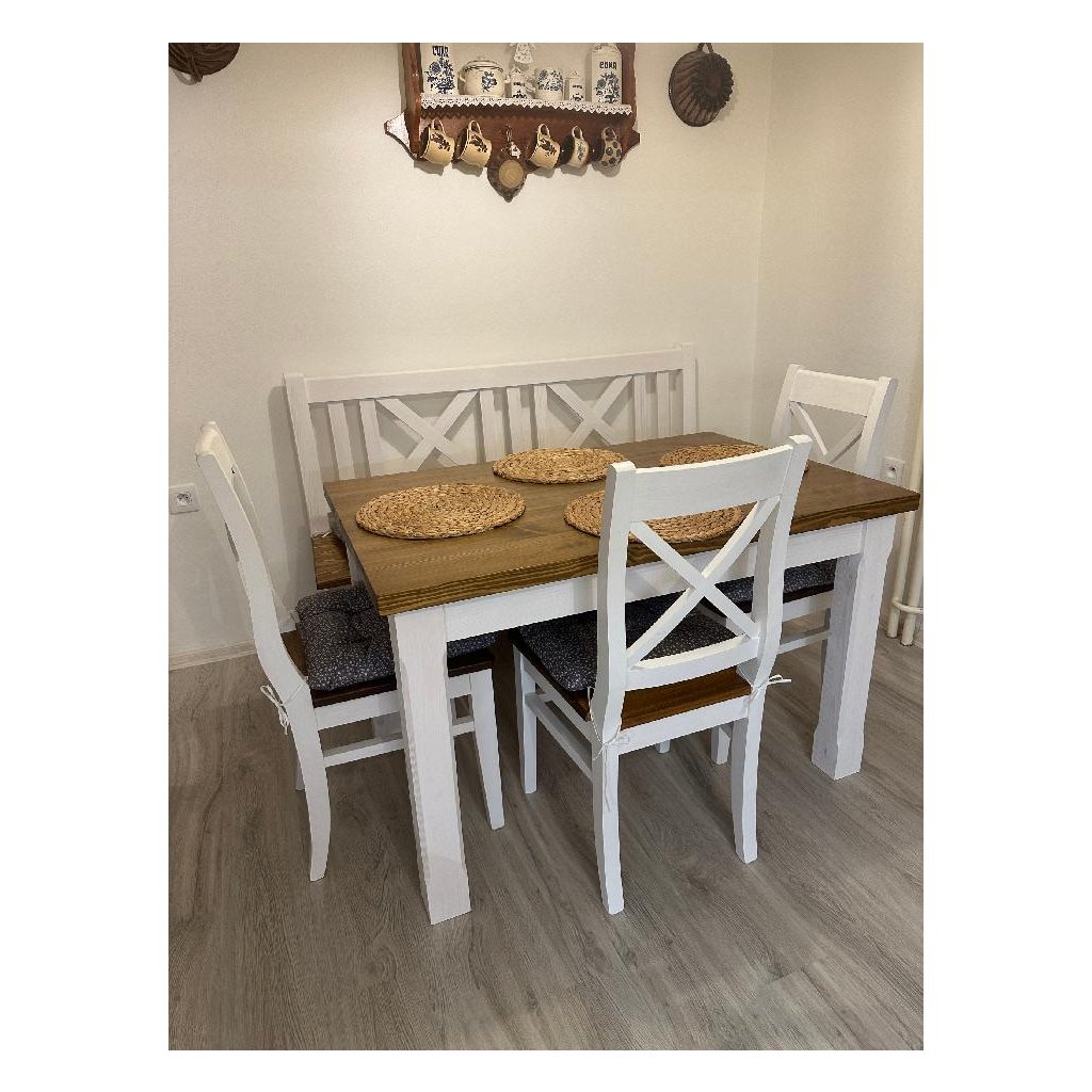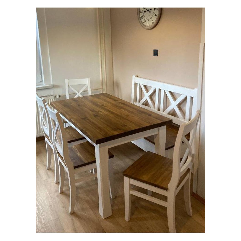 Rustikální židle SWEET HOME je vyrobena z borovicového masivního dřeva a je ošetřena bílou vodou ředitelnou barvou, anebo ve dvoubarevné kombinaci (viz. Vzorník). Pro snazší údržbu doporučujeme objednat nábytek s vrchní hnědou deskou v lakované verzi.
