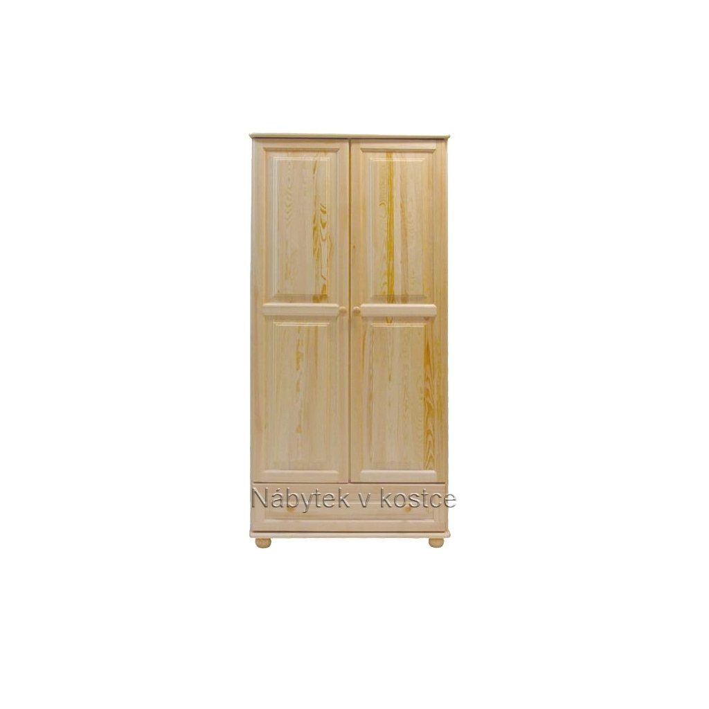 Skříň z masivu Šumava 65 má tyč na ramínka, která je ukryta za dvířky skříně. Můžete si zvolit mezi šířkou 80 cm a 90 cm. V obou variantách je dole praktický šuplík. Elegantní vzhled je doplněný kulatými dřevěnými úchyty, které dokonale ladí s tvarem nožek. Dvířka skříně jsou vylepšeny jemným frézováním.