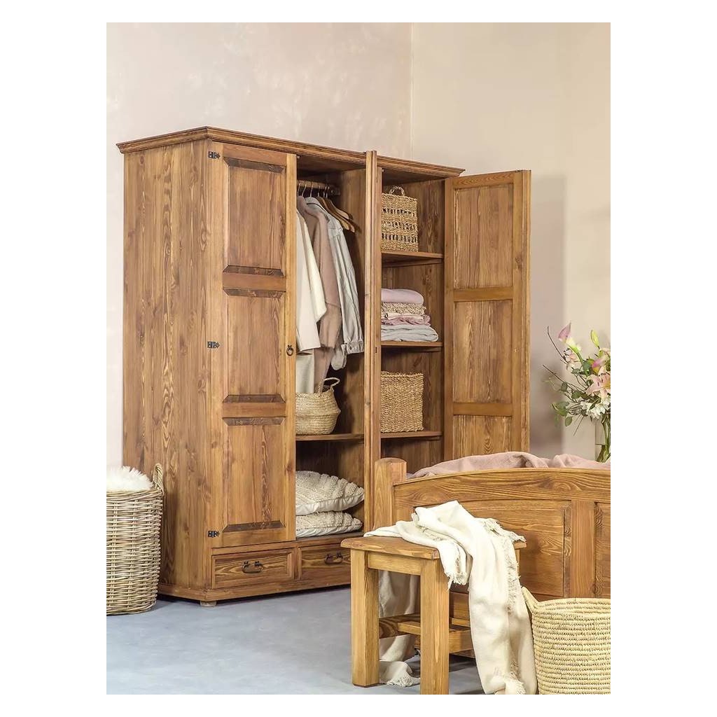 Šatní skříň WHITE HOME Slim je zhotovená z masivní borovice a může být ošetřena voskem v barvě dle výběru. Díky stylovému kování působí tento nábytek elegantním a nadčasovým dojmem. Záda skříně jsou vyrobeny rovněž ze dřeva.
