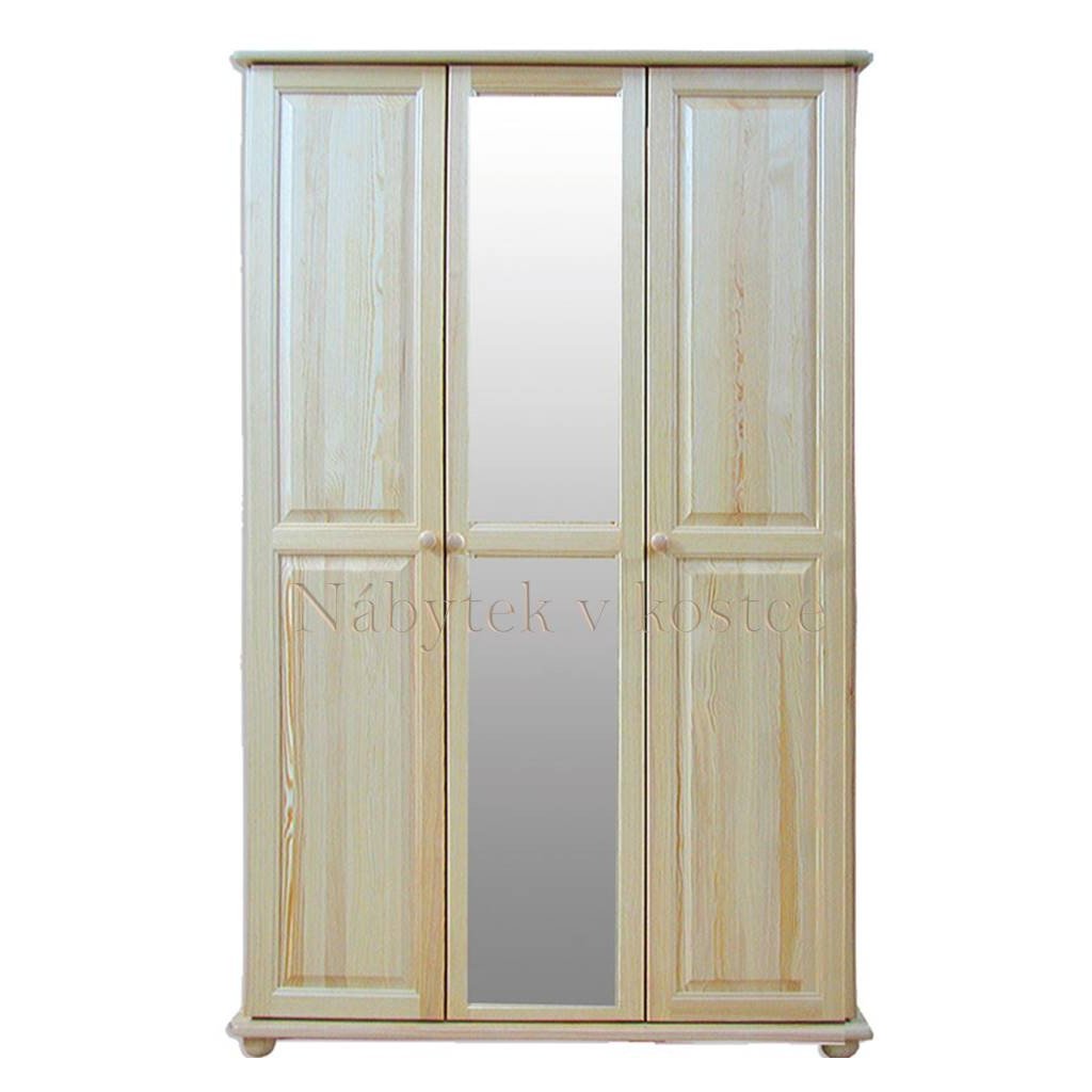 Třídveřová šatní skříň AGNES z borovicového masivního dřeva, se zrcadlem.