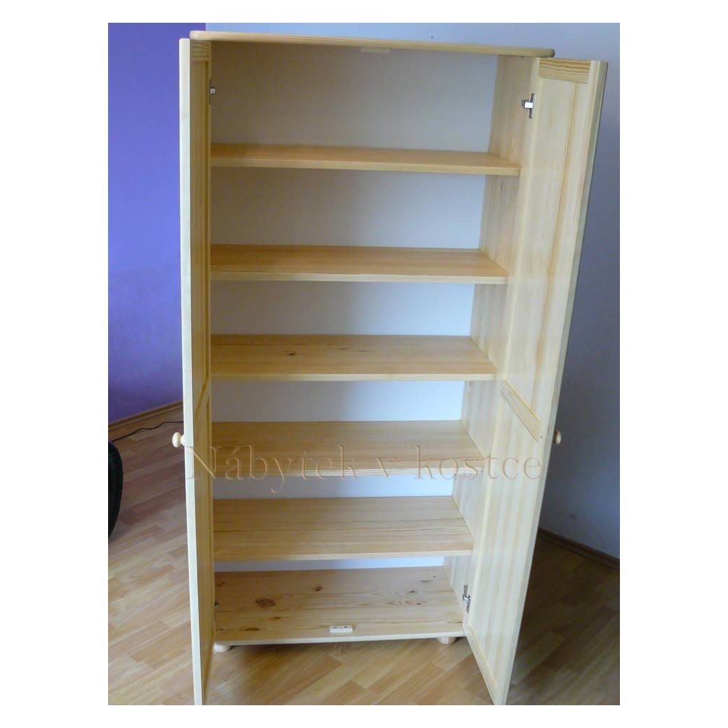 Šatní skříň DEJ09 je klasická, avšak velmi precizně zpracovaná kombinovaná skříň, která je vyrobená za masivní borovice. Zadní část je ze sololitu. Skříň obsahuje 5 ks samostatných polic.