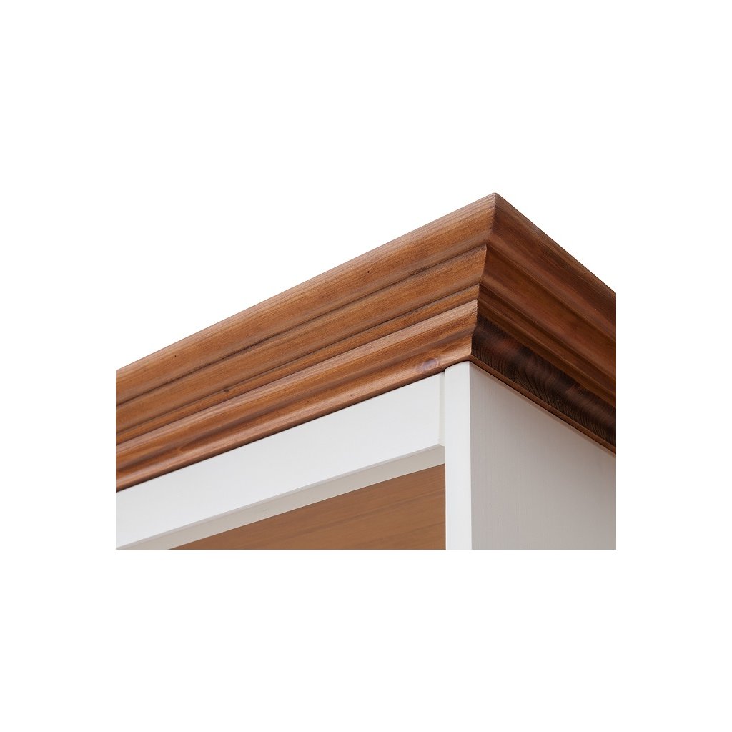 Rustikální skříň BELLUNO Elegante z masivu je vyrobena z masivní finské borovice. Teplá bílá barva, která pokrývá povrch nábytku, krásně vyplní interiéry v provensálském stylu, ale i interiéry ve skandinávském stylu. Finská borovice vyniká svojí odolností a nádhernou dřevitou strukturou, kterou můžeme cítit, při každém doteku.