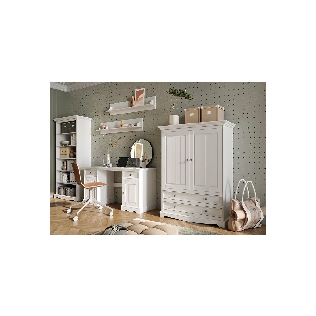 Bílá skříň reprezentuje provensálský styl, který se projevuje v detailech jako jsou ozdobné vyřezávání nebo kovové úchyty, ale i ozdobná deska. Kolekce BELLUNO Elegante nabízí i další barevné možnosti skříně a její další rozměry. Skříně jsou vhodné do Vaší ložnice, dětského pokoje nebo předsíně.