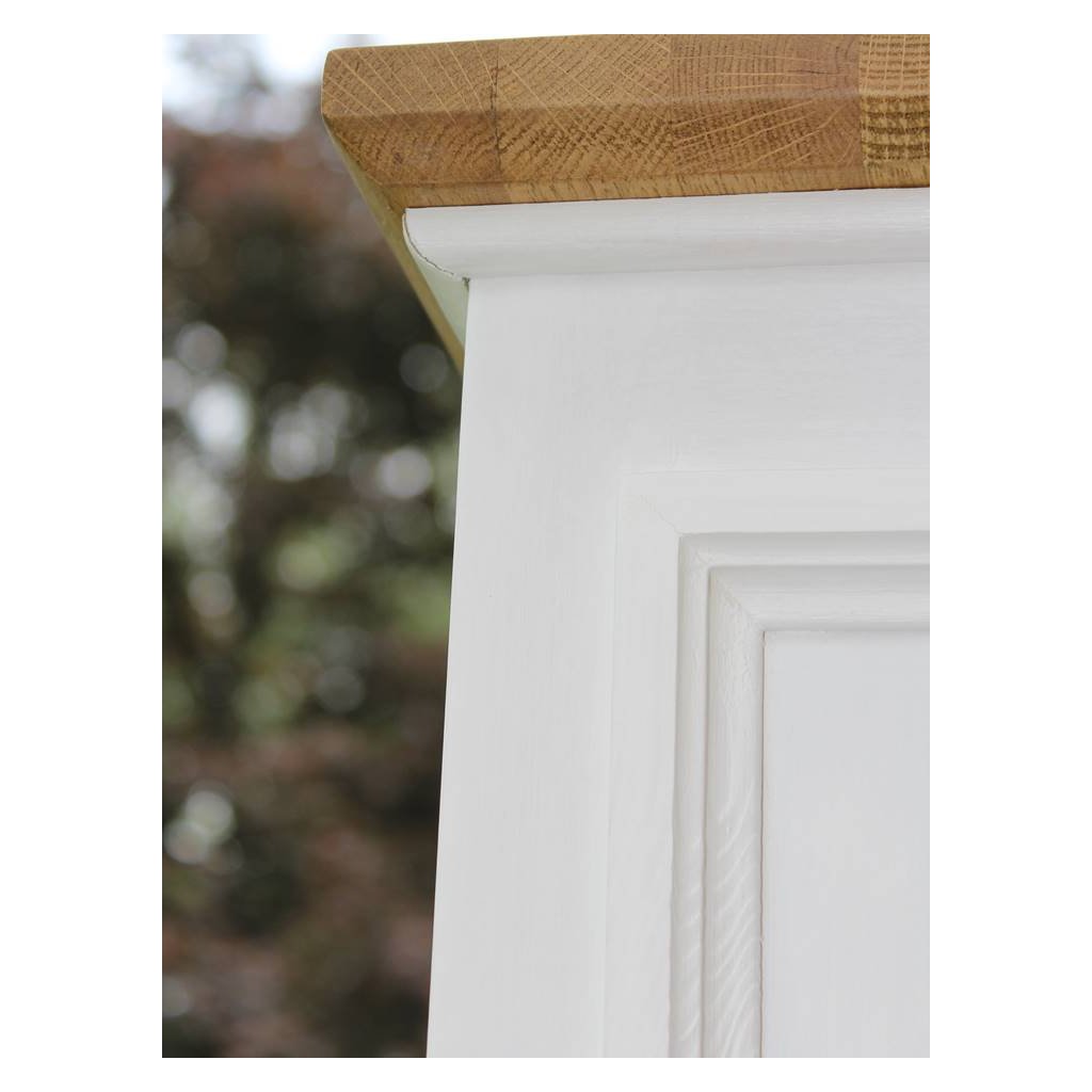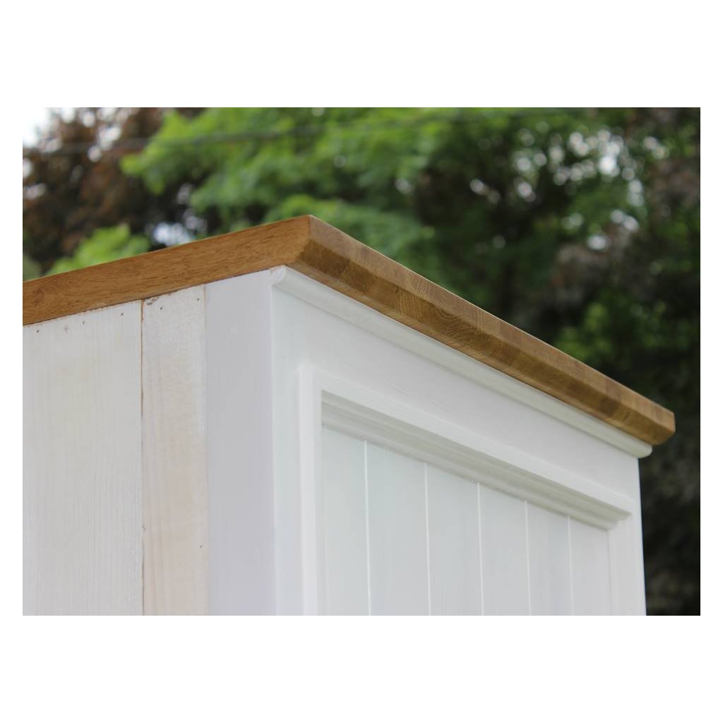 Masivní provensálská knihovna PROVENCE je spojením bukového a dubového dřeva. Dubové dřevo (horní deska) je ošetřeno lakem a bukové dřevo je ošetřeno akrylovou barvou v bílé barvě.