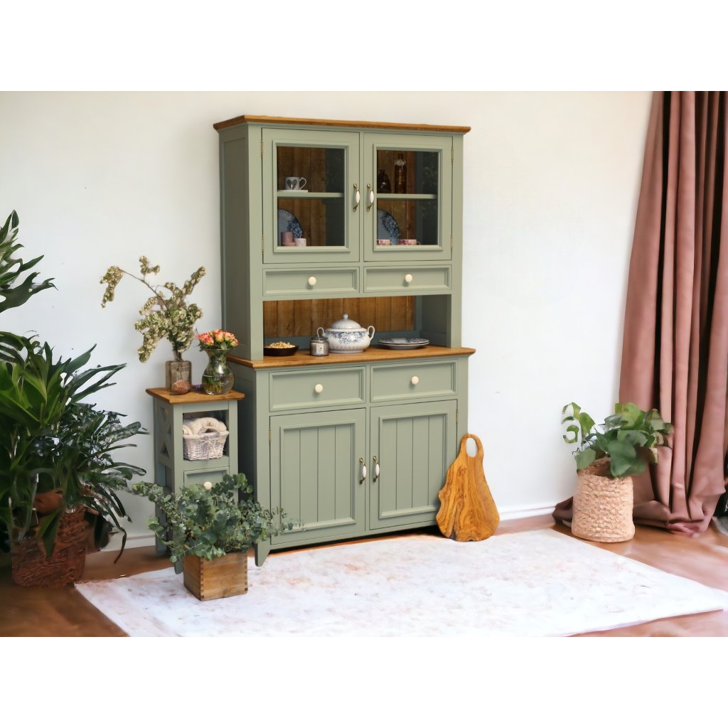 Masivní skříň PROVENCE je šatní skříň s policemi vyrobená z masivního bukového dřeva, které je ošetřeno akrylovou barvou v olivovém odstínu, a z masivního dubového dřeva (horní deska), které je ošetřeno lakem. Díky spojení těchto dvou druhů masivního dřeva získala masivní skříň jedinečný vzhled, který zdokonalí veškerý interiér.