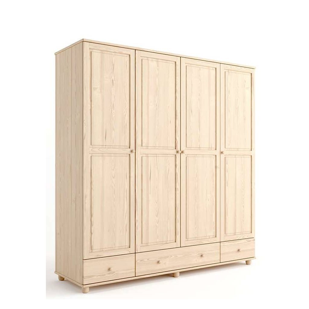 Skříň z masivu BIANCA Vigo je stylová klasická šatní skříň se šuplíky, která je vyrobená z masivního borovicového dřeva a ošetřena bezbarvým lakem, pro snadnější údržbu. Ve dvoudvéřové části skříně se nachází šatní tyč s policí v horní části. Jednodveřové části skříně nabízejí police k přehlednému uložení vašeho oblečení. Zadní část skříně tvoří dřevovláknitá deska HDF.