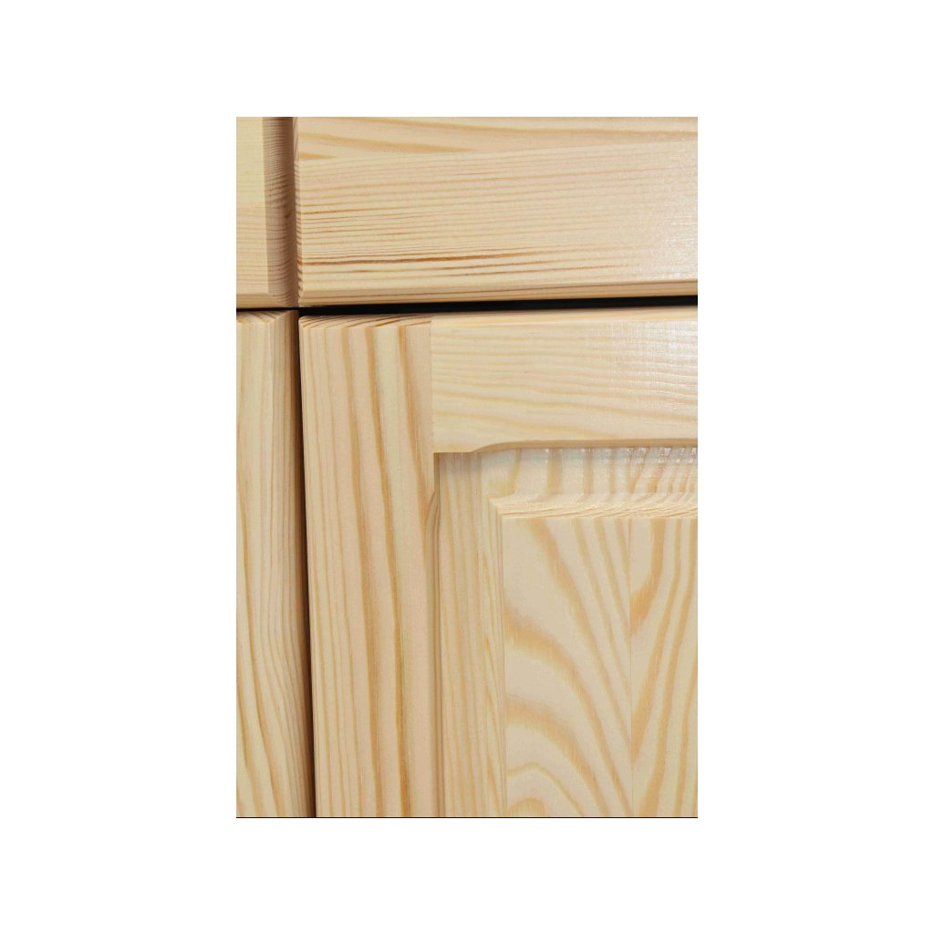 Skříň z masivu Šumava 70 je zhotovena z jakostního borovicového masivu, který je ošetřen bezbarvým lakem. Díky tomu je skříň ochráněná nejen před drobnými povrchovými poškozeními, ale zároveň vynikne jedinečná struktura dřeva. Zadní část tvoří sololitová deska.