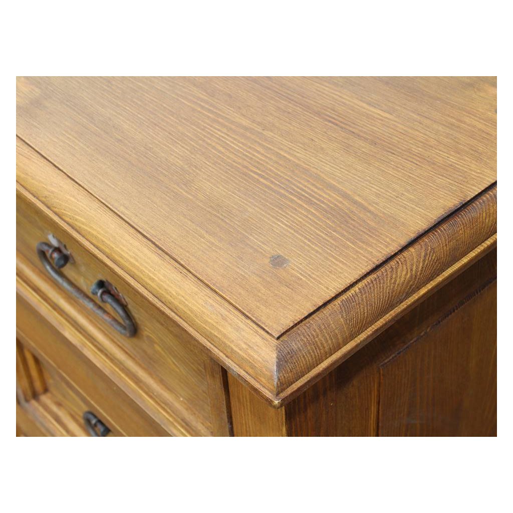 Rustikální skříňka MEXICANA je celomasivní komoda vyrobena z borovicového masivního dřeva (jen zadní stranu tvoří dřevěná dýha) a ošetřena voskem nebo lakem, dle výběru (vosk světle hnědý-medový, ořech, kaštan, dub tmavý, dub kouřový anebo vosk bezbarvý). Ze dřeva jsou rovněž vyrobeny i pojezdy na šuplíky a police.