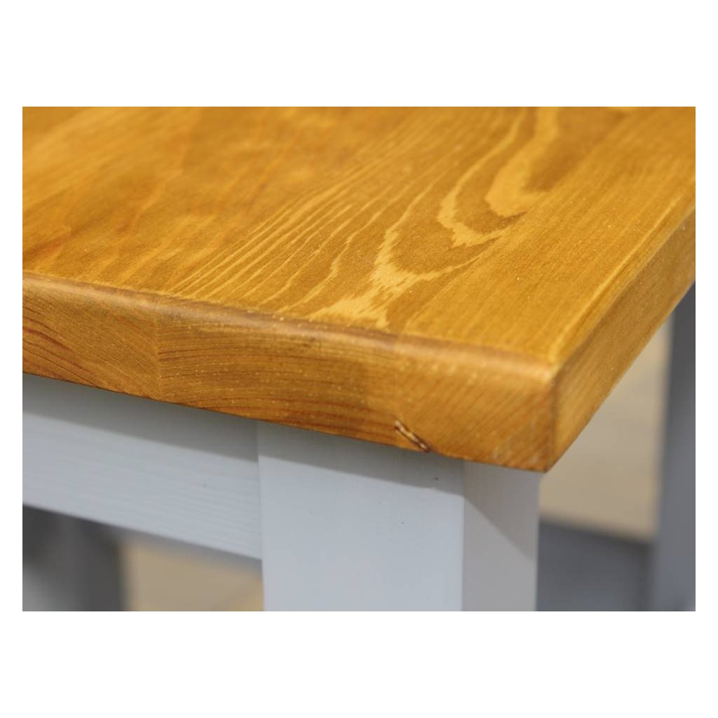 Masivní taburet PROVENCE SIL02 je vyroben z masivního borovicového dřeva, které je ošetřeno akrylovou barvou v krémovém odstínu. Horní deska je vyrobena z masivního dubového nebo borovicového dřeva, které je ošetřeno lakem.