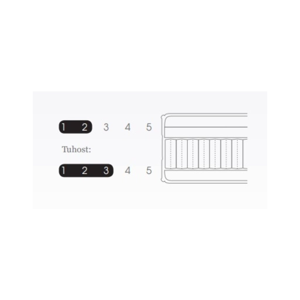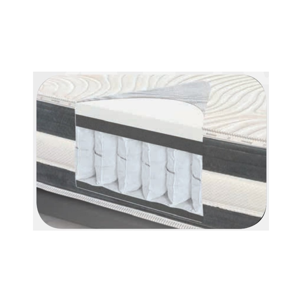 Jádro matrace tvoří taštičkové pružiny SYSTÉMU 1000, které obsahují 1000 samostatně uložených pružin na 2 m². Tato konstrukce zajišťuje výbornou vzdušnost a podporu po celé ploše matrace. Pružinový systém umožňuje rovnoměrné rozložení váhy těla a udržuje optimální polohu páteře.