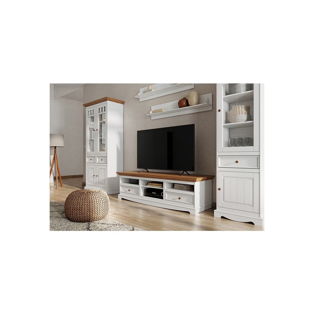 Rustikální televizní stolek BELLUNO Elegant z masivu je vyroben z masivní finské borovice. Teplá bílá barva, která pokrývá povrch nábytku, krásně vyplní interiéry v provensálském stylu, ale i interiéry ve skandinávském stylu. Finská borovice vyniká svojí odolností a nádhernou dřevitou strukturou, kterou můžeme cítit, při každém doteku.