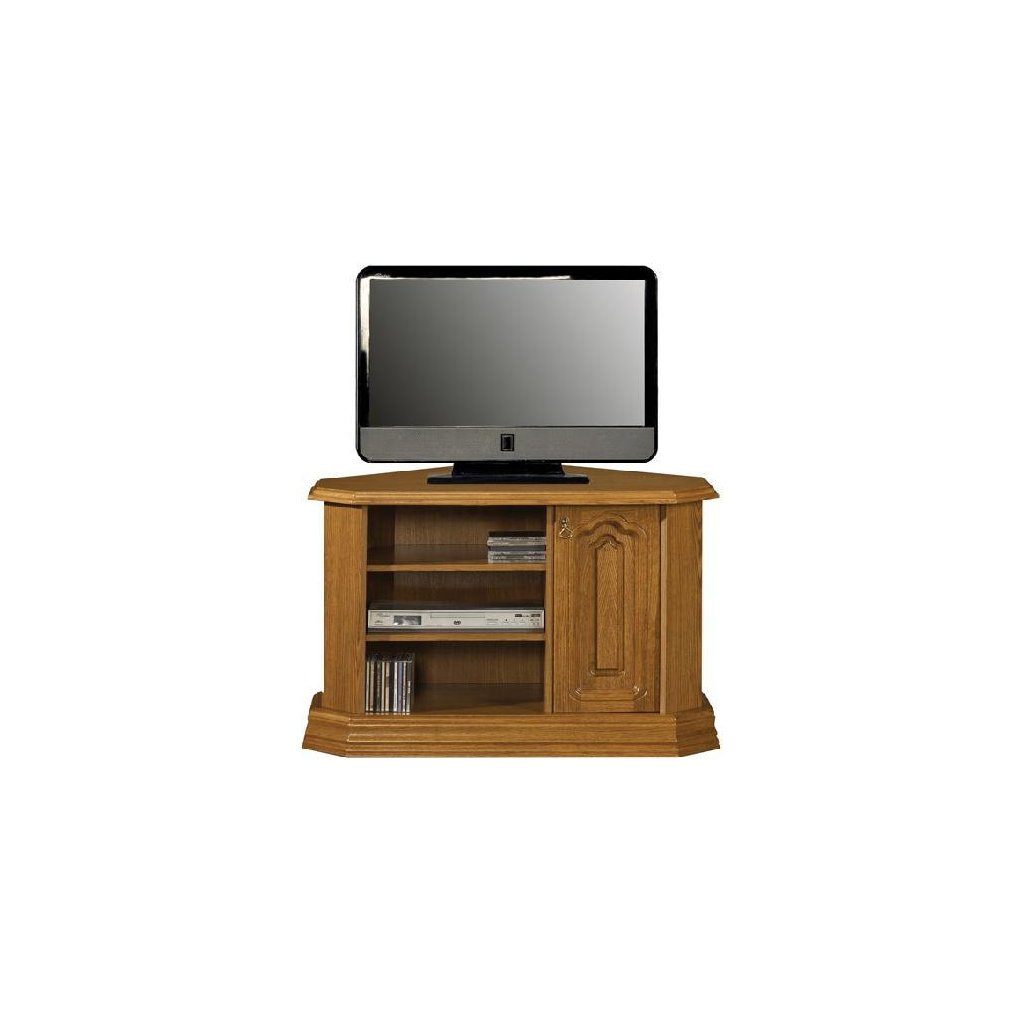 Televizní stolek stojí na ozdobném podstavci, který je stejně jako vrchní deska vyroben z lakované MDF, boky jsou z lamina, přední část z dubového masivu.