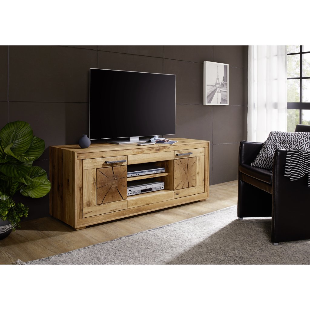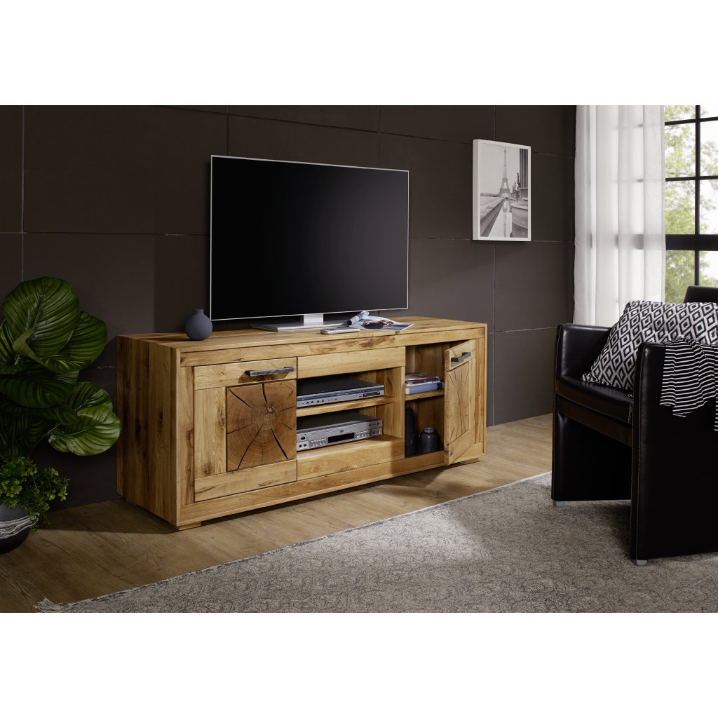 Televizní stolek MANDALA je stylový stolek, vhodný do Vašeho obývacího pokoje nebo pracovny. Televizní stolek je vyroben z masivního dubového dřeva s kovovými úchyty. Výběr tohoto materiálu zajišťuje, že se jedná o produkt špičkové kvality a nábytek má jedinečný vzhled díky svému provedení z masivního dřeva. Povrch nábytku je ošetřen čirým olejem.