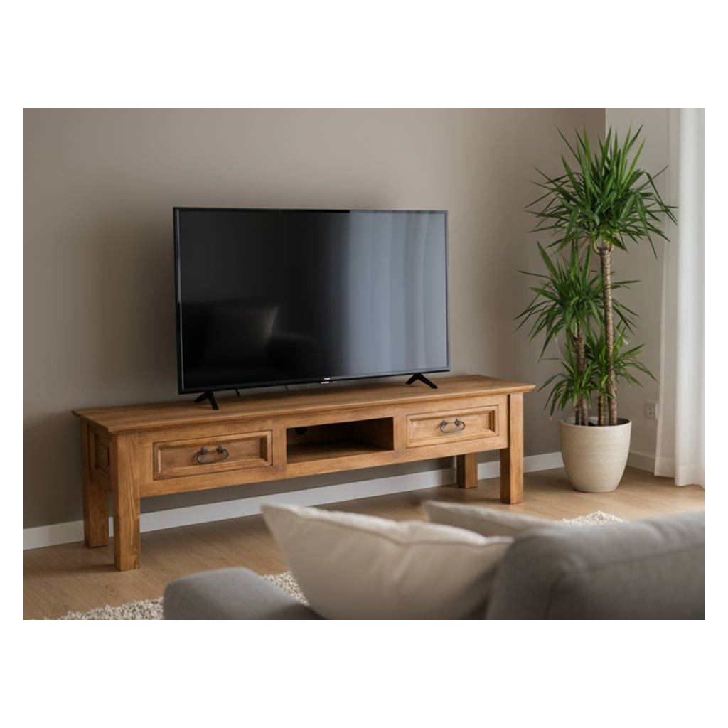 Tv stolek z masívu Mexicana je celomasivní komoda po televizi, vyrobena z borovicového masivního dřeva (jen zadní stranu tvoří sololit) a ošetřena voskem nebo lakem, jehož barevnou variantu si můžete zvolit. Ze dřeva jsou rovněž vyrobeny i pojezdy na šuplíky a police, vše doplněno o stylové úchyty v retro stylu.