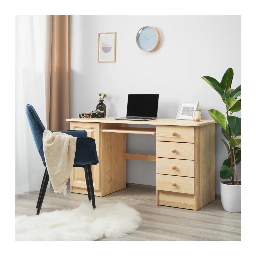 Televizní stolek z masivu je klasický TV stolek se šuplíky, policí a skříňkami který je vyroben z jakostního borovicového dřeva a ošetřen ekologickým lakem, který zamezí drobnému mechanickému poškození, a zároveň dá vyniknout přirozené kráse dřeva.