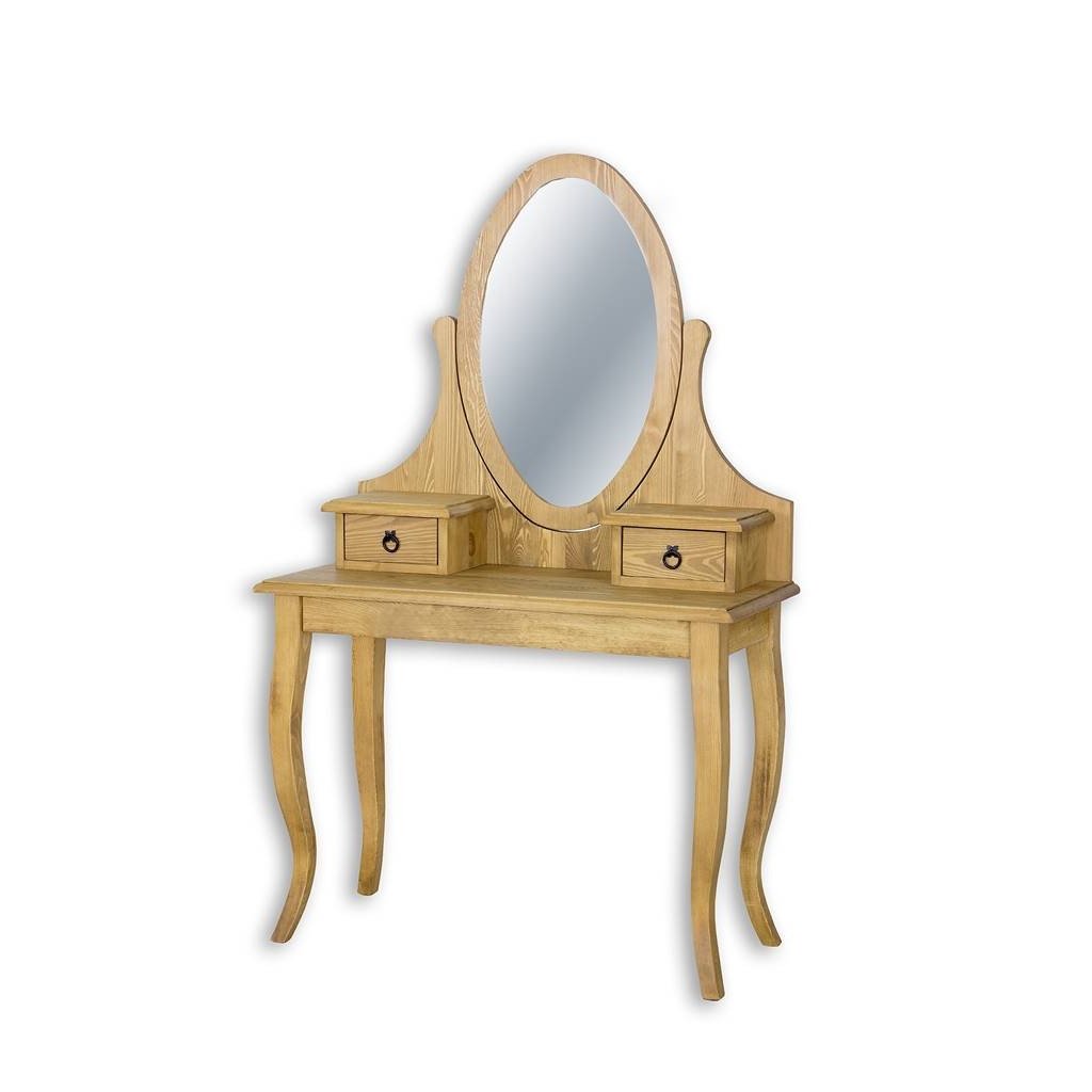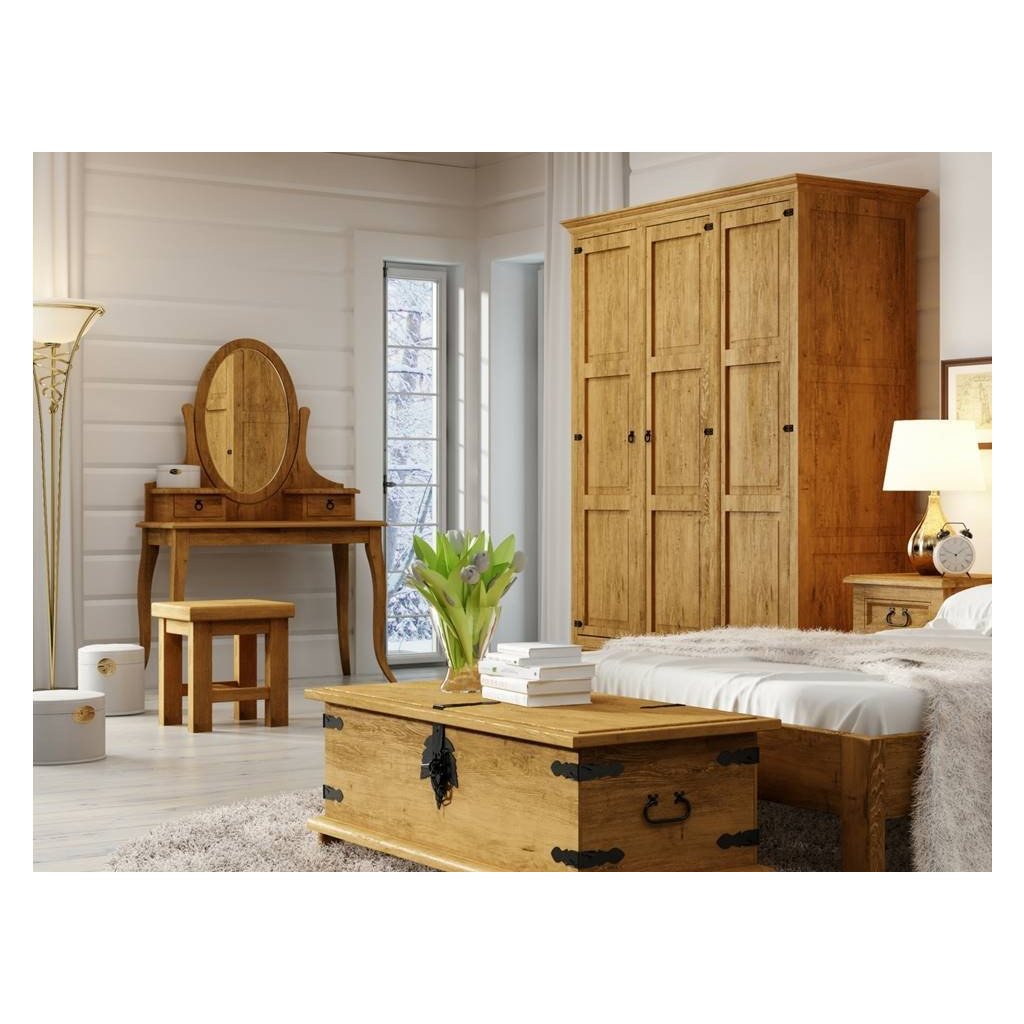 Rustikální toaletní stolek CORDOBA je vyrobený z masivního borovicového dřeva. Dřevo je ošetřeno voskem na bázi přírodního včelího vosku, který dá vyniknout jeho nádherné kresbě.