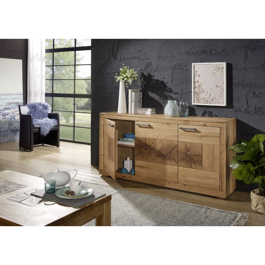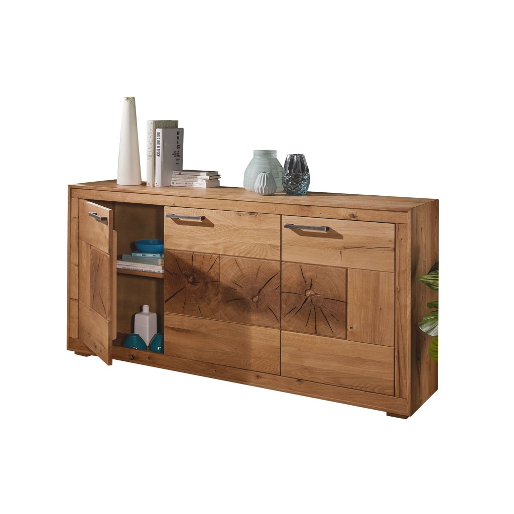 Třídveřová komoda MANDALA je stylová komoda, vhodná do Vaší kuchyně, ložnice nebo obývacího pokoje. Komoda je vyrobena z masivního dubového dřeva s kovovými úchyty. Výběr tohoto materiálu zajišťuje, že se jedná o produkt špičkové kvality a nábytek má jedinečný vzhled díky svému provedení z masivního dřeva. Povrch nábytku je ošetřen čirým olejem.