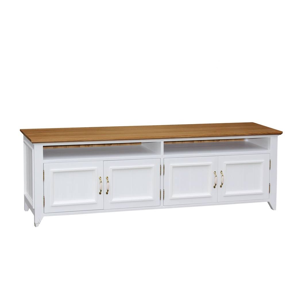 Masivní televizní stolek PROVENCE je spojením bukového a dubového dřeva. Dubové dřevo (horní deska) je ošetřeno lakem a bukové dřevo je ošetřeno akrylovou barvou v bílé barvě.