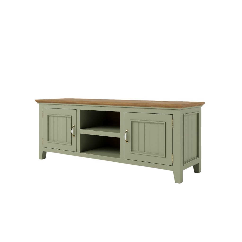 Masivní TV stolek PROVENCE je stolek vyrobený z masivního bukového dřeva, které je ošetřeno akrylovou barvou v olivovém odstínu, a z masivního dubového dřeva (horní deska), které je ošetřeno lakem. Díky spojení těchto dvou druhů masivního dřeva získal masivní stolek jedinečný vzhled, který zdokonalí veškerý interiér.