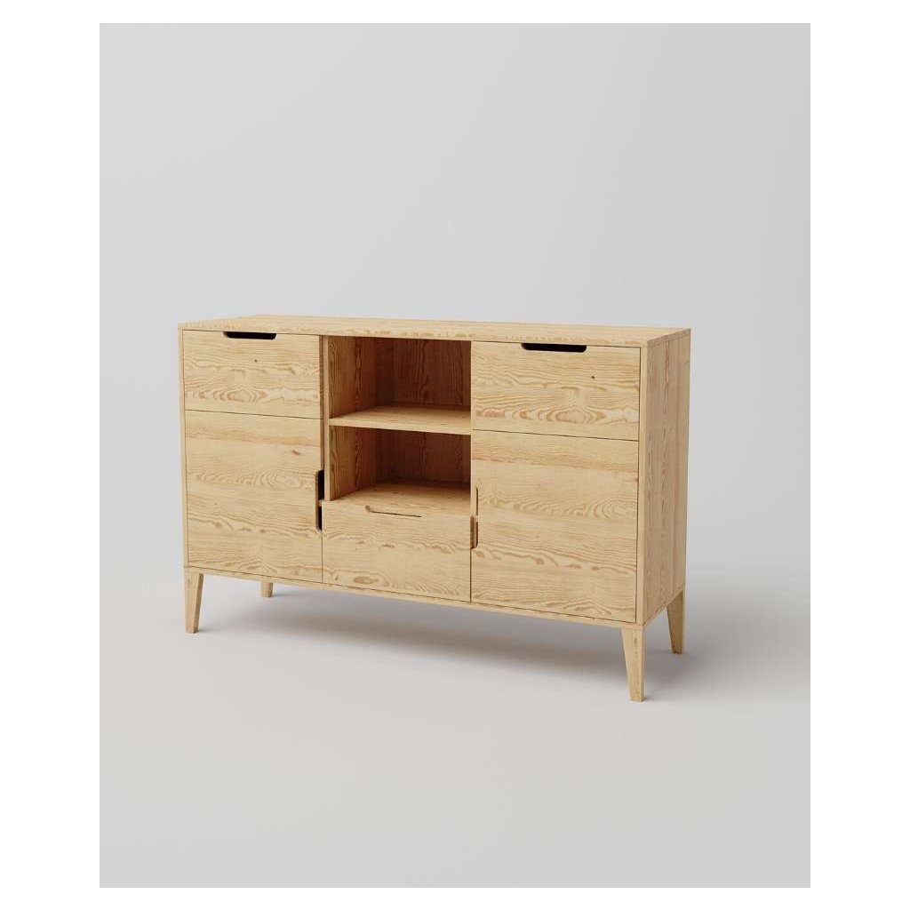 Představujeme vzdušný RETRO nábytek vyrobený z masivního borovicového dřeva, který je nejen funkční, ale také krásný a jeho design odkazuje na stylový ikonický nábytek z poloviny století. Konstrukce nábytku je lehká díky skutečnosti, že tělo nábytku je namontováno na zužující se, obdélníkové nohy. Moderním akcentem je absence úchytek, díky kterým působí nábytek svěže a moderně. Dřevěný nábytek je oblíben nejen díky své odolnosti a vysoké životnosti, ale rovněž i díky nádherné struktuře a vůni dřeva, která po dlouhou dobu přetrvává v interiérech a zútulňuje tak náš domov.