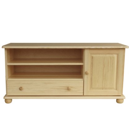 TV stolek z borovicového masivu a je vhodný i do bytu. Je složen z prostorného šuplíku s dvěmi dvířky.