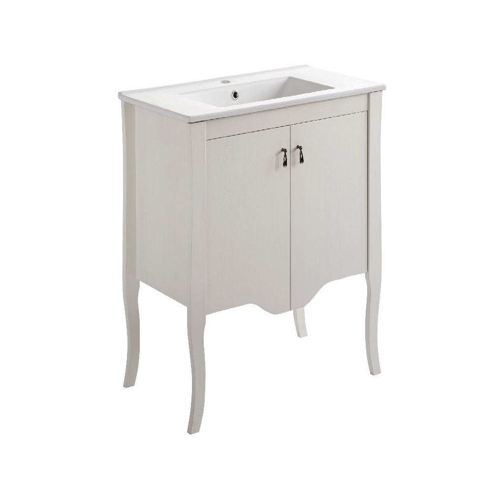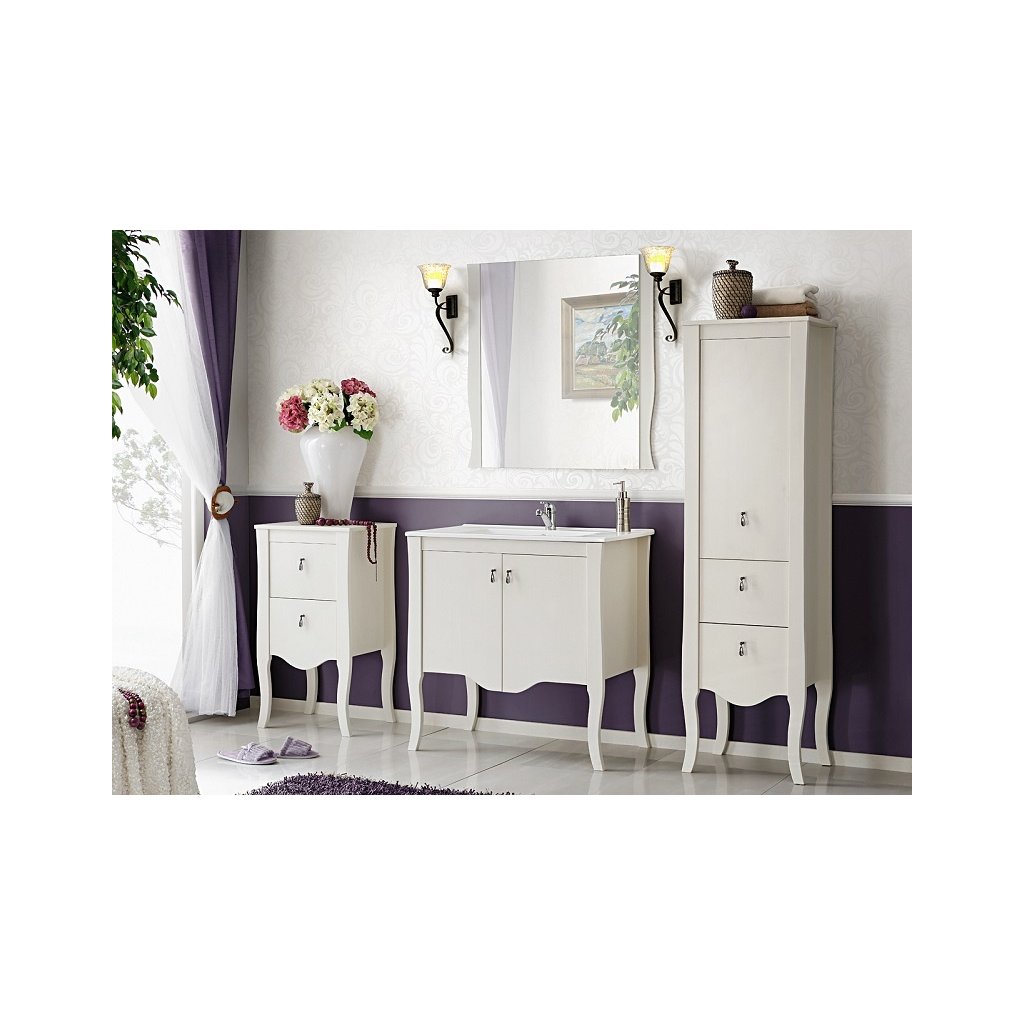 Nabízená umyvadlová skříňka do koupelny Elisabeth je vyrobena z kvalitního borovicového dřeva, které je známé svou pružností, pevností, trvanlivostí a odolností vůči vlhku, což z něj dělá ideální volbu do koupelny. Povrch borovicového dřeva byl obarven na bílo, což modelu dodává čistý a svěží dojem. Skříňka zaujme zejména svými jemnými křivkami a roztomilými kovovými úchytkami, které modelu propůjčují eleganci a šarm.