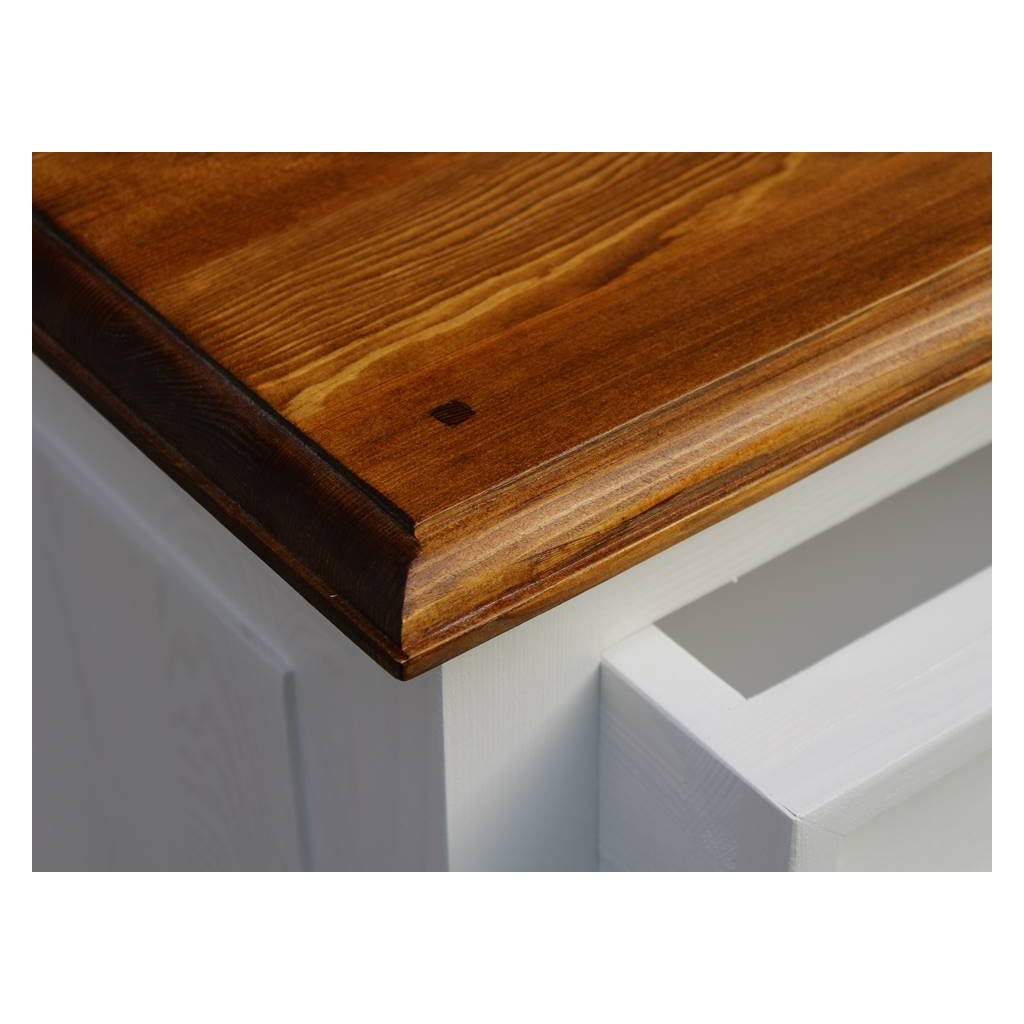 Rustikální komoda SWEET HOME je vyrobena z borovicového masivního dřeva a je ošetřena pouze bílou vodou ředitelnou barvou, anebo ve dvoubarevné kombinaci (viz. vzorník). Pro snazší údržbu doporučujeme objednat nábytek s vrchní hnědou deskou v lakované verzi.
