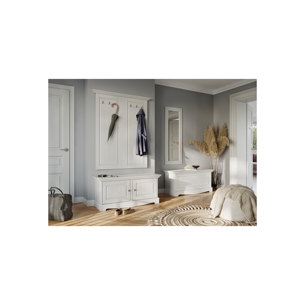 Rustikální vitrína BELLUNO Elegant z masivu je vyrobena z masivní finské borovice. Teplá bílá barva, která pokrývá povrch nábytku, krásně vyplní interiéry v provensálském stylu, ale i interiéry ve skandinávském stylu. Finská borovice vyniká svojí odolností a nádhernou dřevitou strukturou, kterou můžeme cítit, při každém doteku.