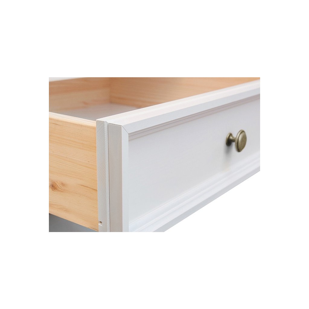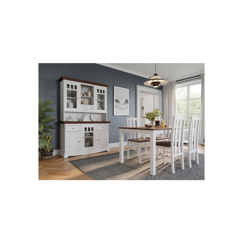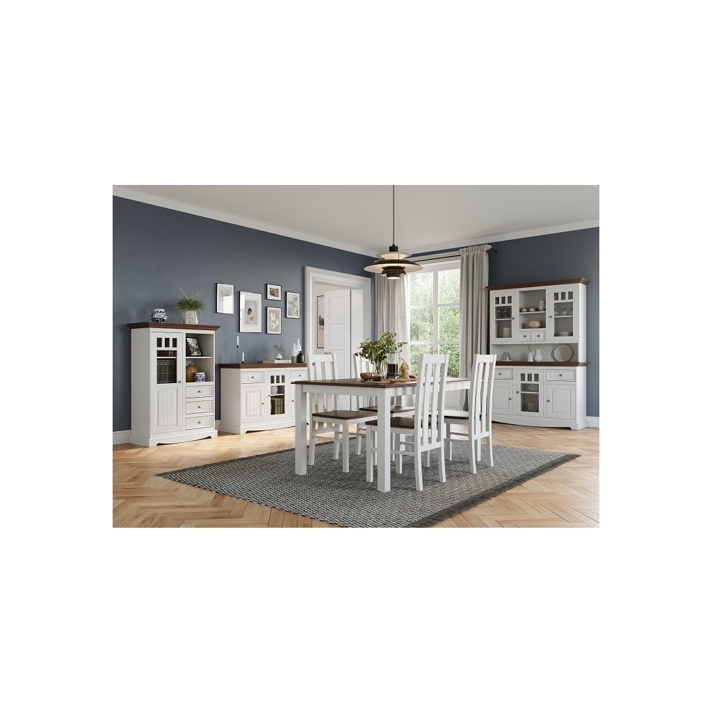 Rustikální vitrína BELLUNO Elegant z masivu je vyrobena z masivní finské borovice. Teplá bílá barva, která pokrývá povrch nábytku, krásně vyplní interiéry v provensálském stylu, ale i interiéry ve skandinávském stylu. Finská borovice vyniká svojí odolností a nádhernou dřevitou strukturou, kterou můžeme cítit, při každém doteku.