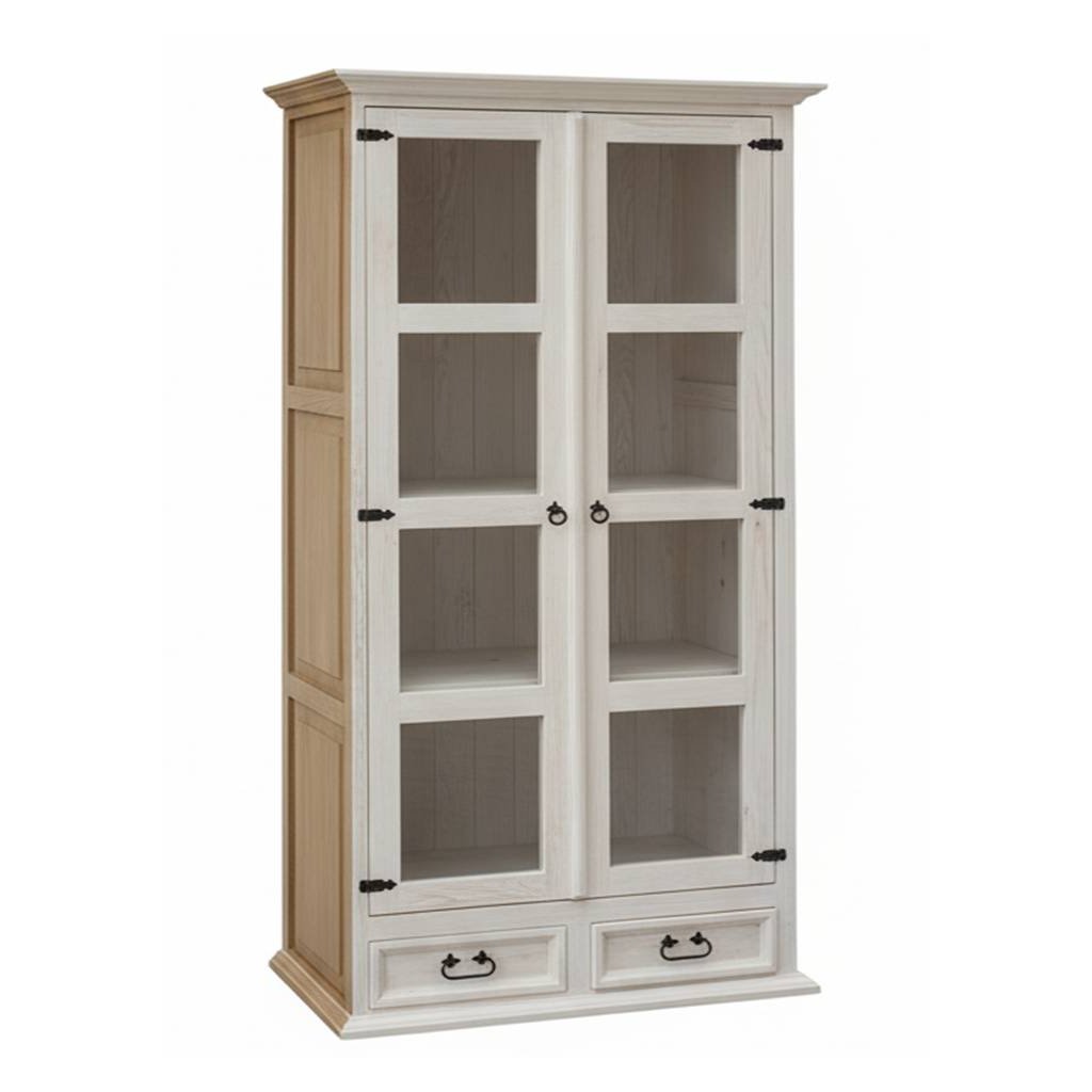 Rustikální celomasivní vitrína MEXICANA je vhodná do kuchyně, jídelny i do pracovny jako knihovna.