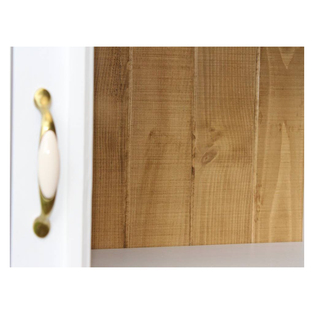 Vitrína z masivu je k dispozici nejen v klasické variantě se zdobenými bočními deskami, ale také s hladkými deskami - SLIM. Úchytky lze objednat i v černé a zlaté variantě (v případě zájmu uveďte tuto informaci do poznámky při objednávce).